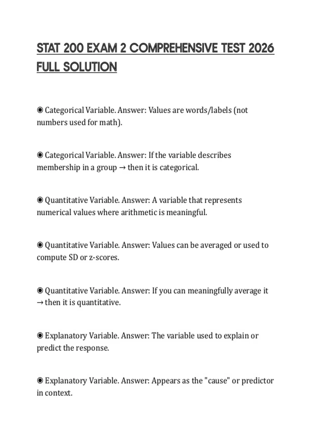 STAT 200 EXAM 2 COMPREHENSIVE TEST 2026 FULL SOLUTION
