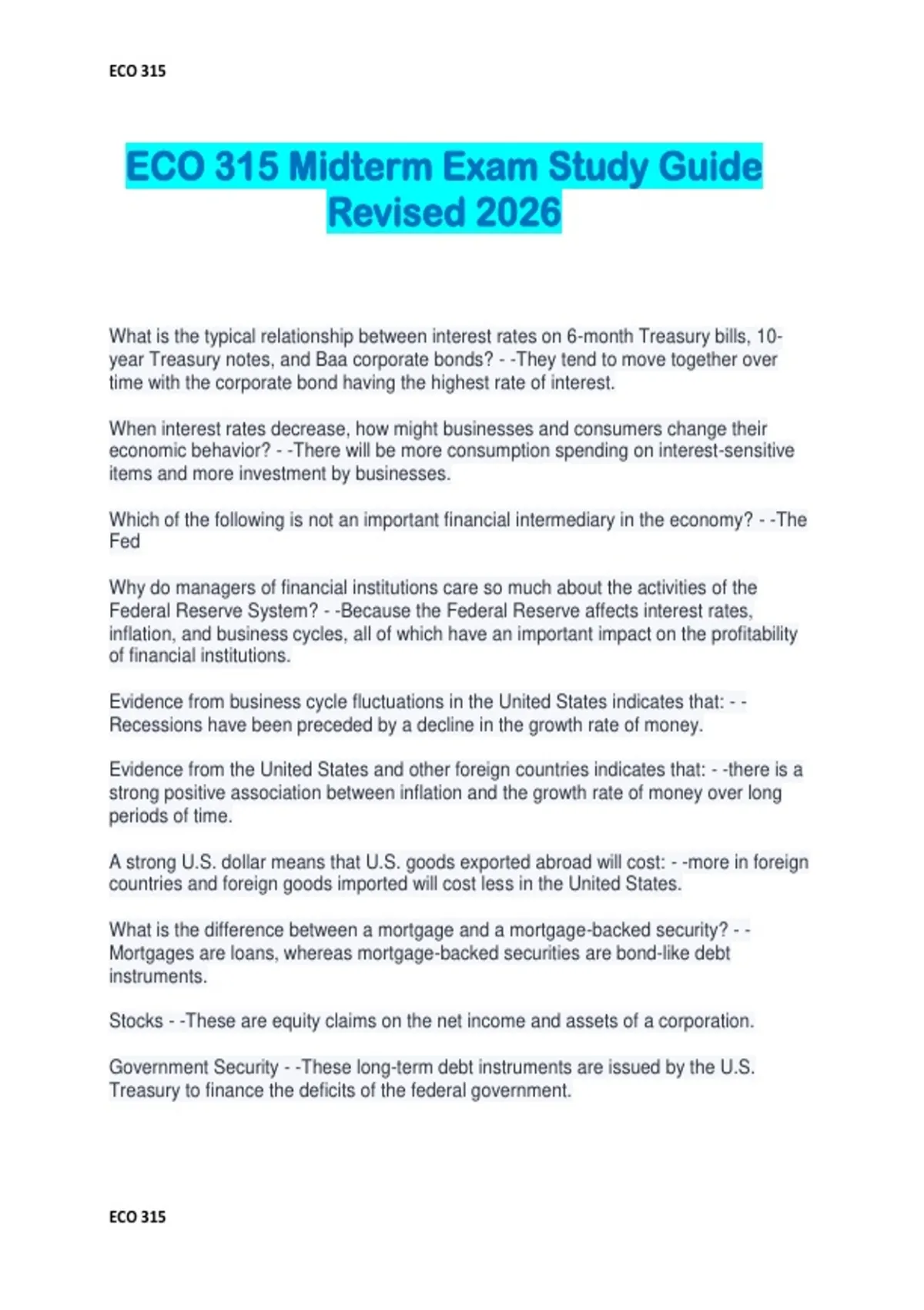 ECO 315 Midterm Exam Study Guide