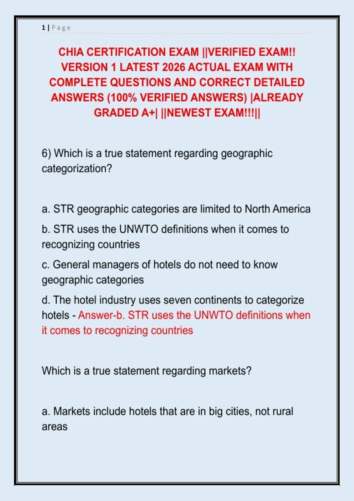 hotels - Answer-b. STR uses the UNWTO definitions when
