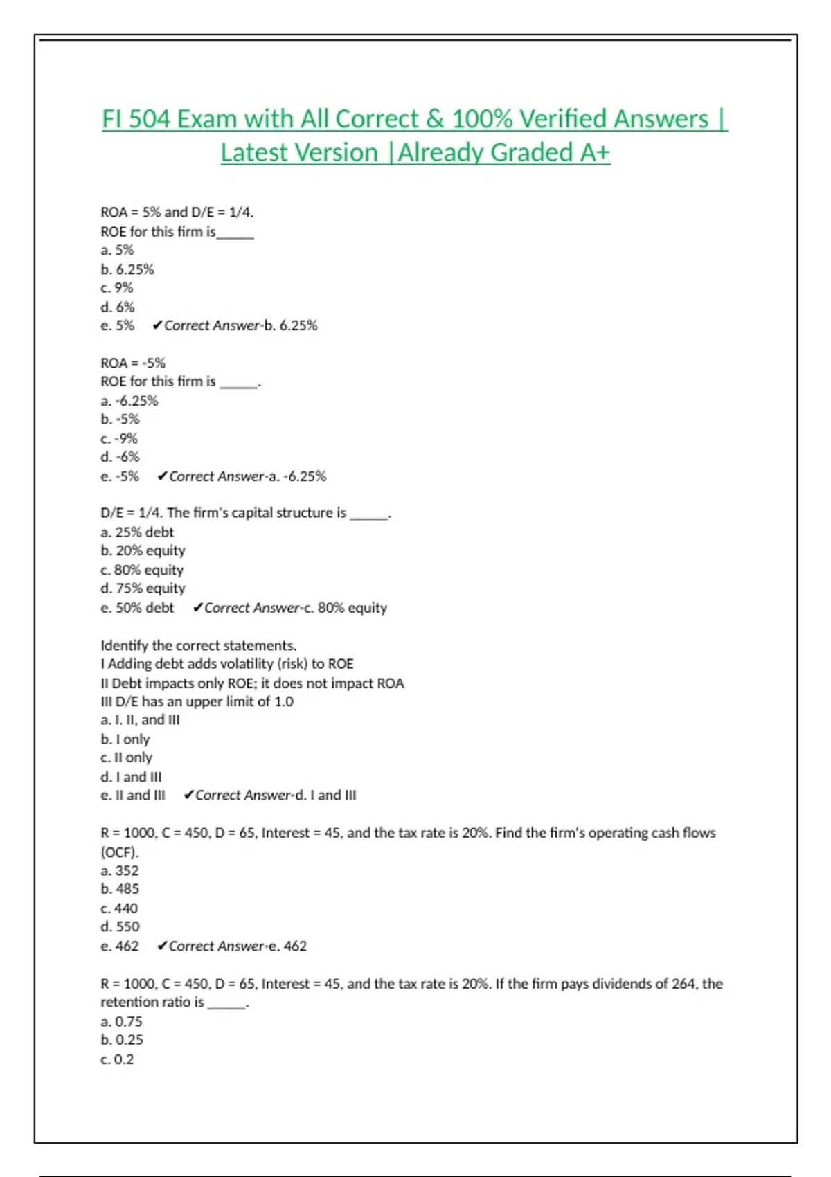 FI 504 Exam with All Correct & 100% Verified Answers |