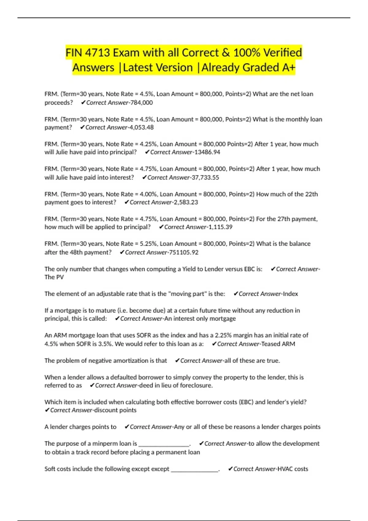 FIN 4713 Exam with all Correct & 100% Verified Answers |Latest Version |Already Graded A+