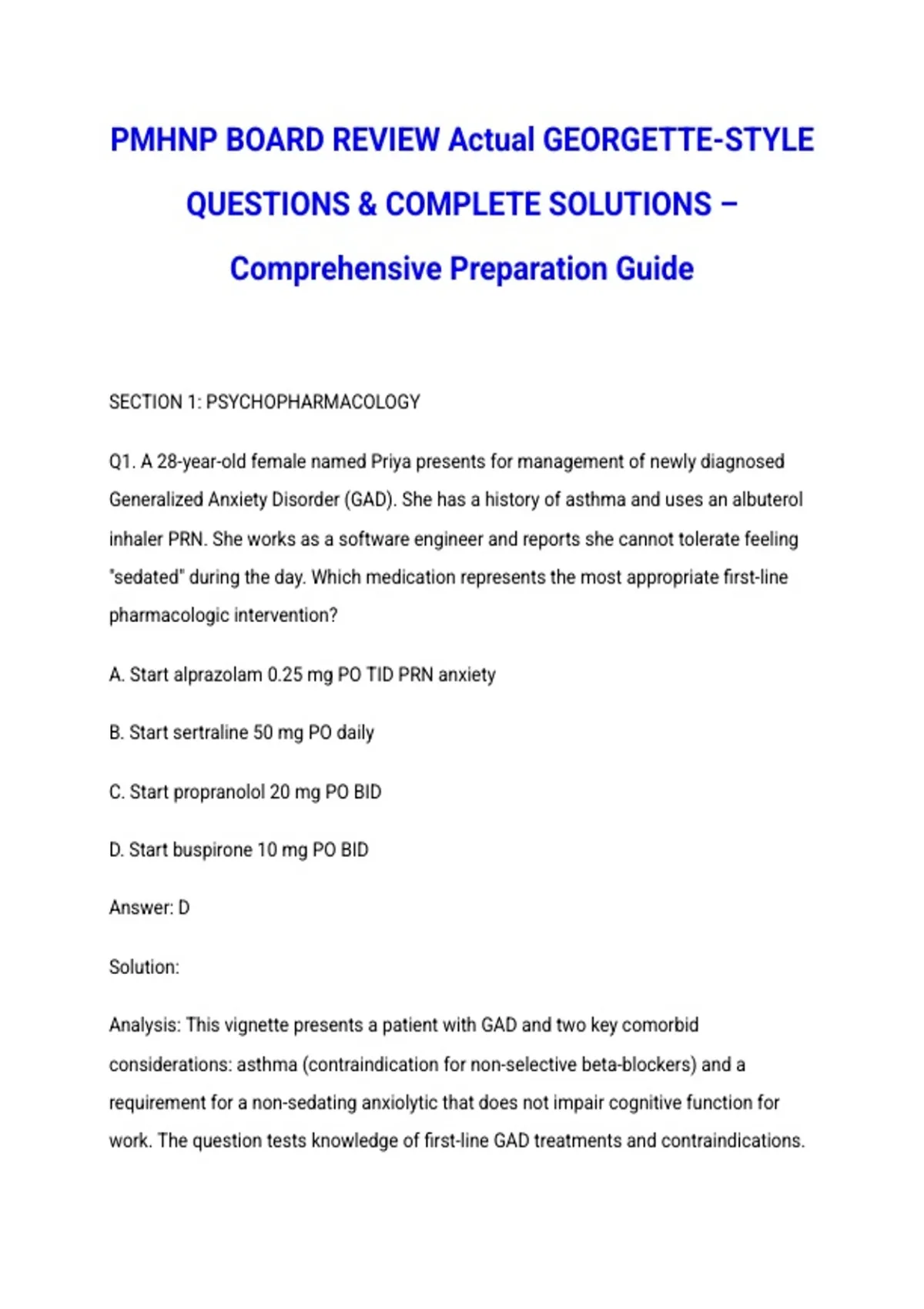 PMHNP BOARD REVIEW Actual GEORGETTE-STYLE QUESTIONS & COMPLETE SOLUTIONS – Comprehensive Preparation Guide