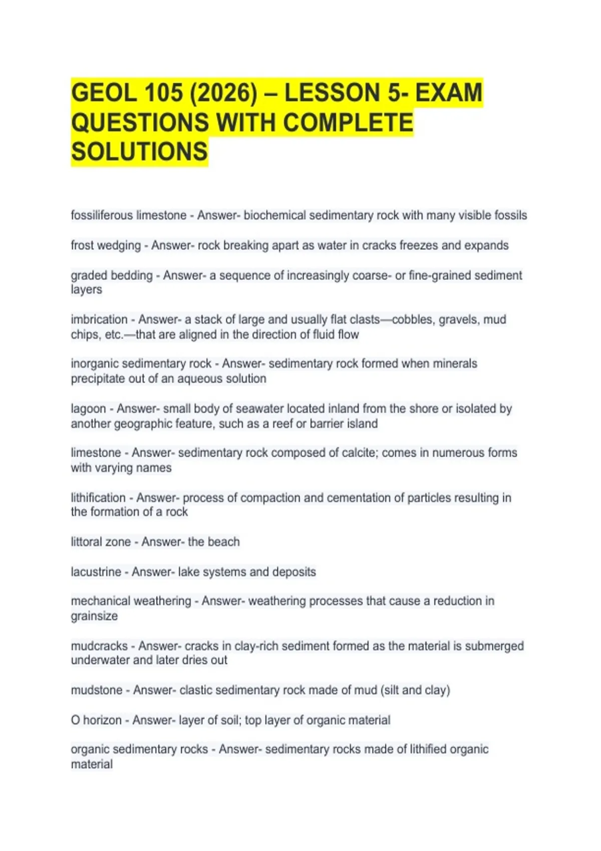 GEOL 105 (2026) – LESSON 5- EXAM