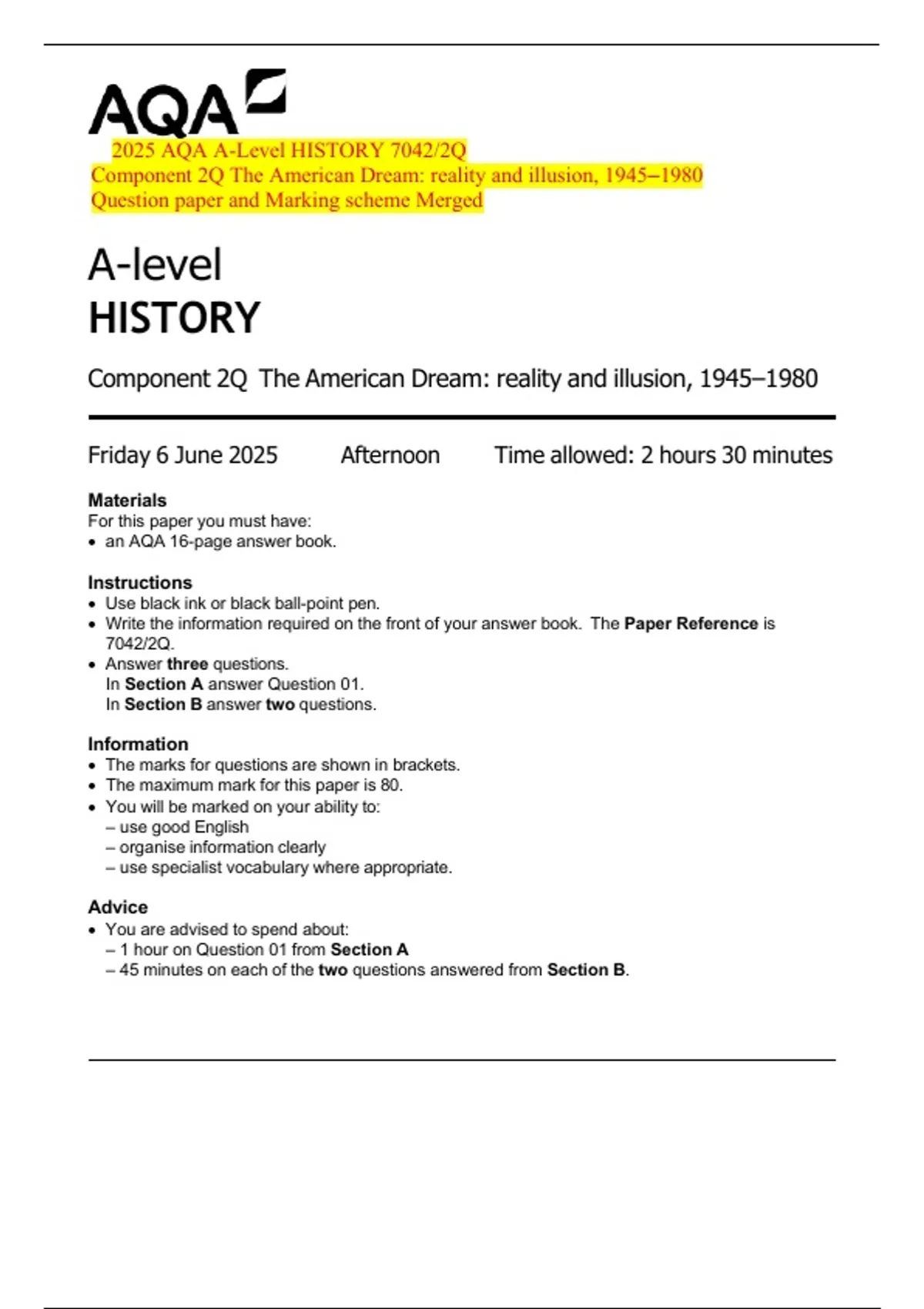 Friday 6 June 2025 Afternoon Time allowed: 2 hours 30 minutes
