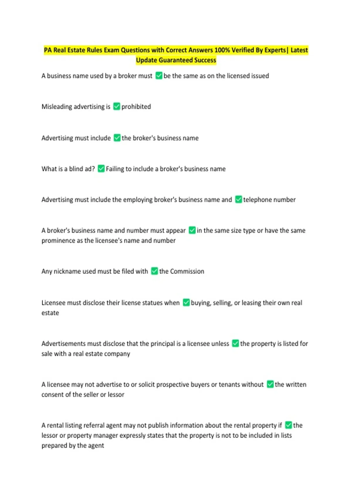 PA Real Estate Rules Exam Questions with Correct Answers 100% Verified By Experts