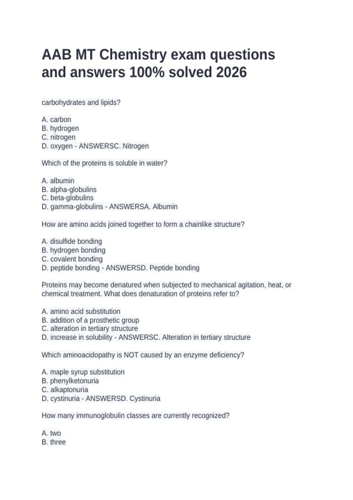 AAB MT Chemistry exam questions and answers 100% solved 2026