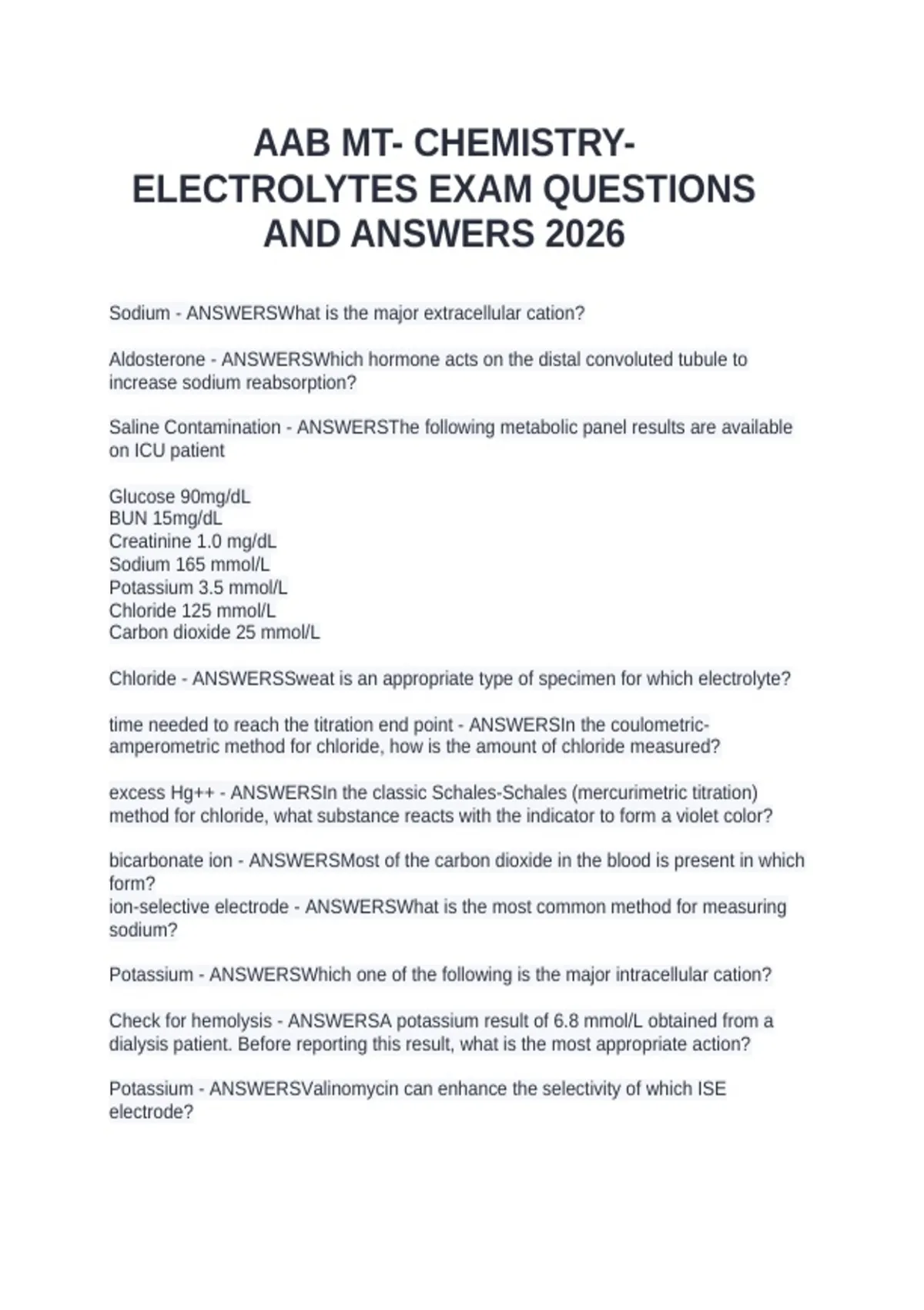 ELECTROLYTES EXAM QUESTIONS