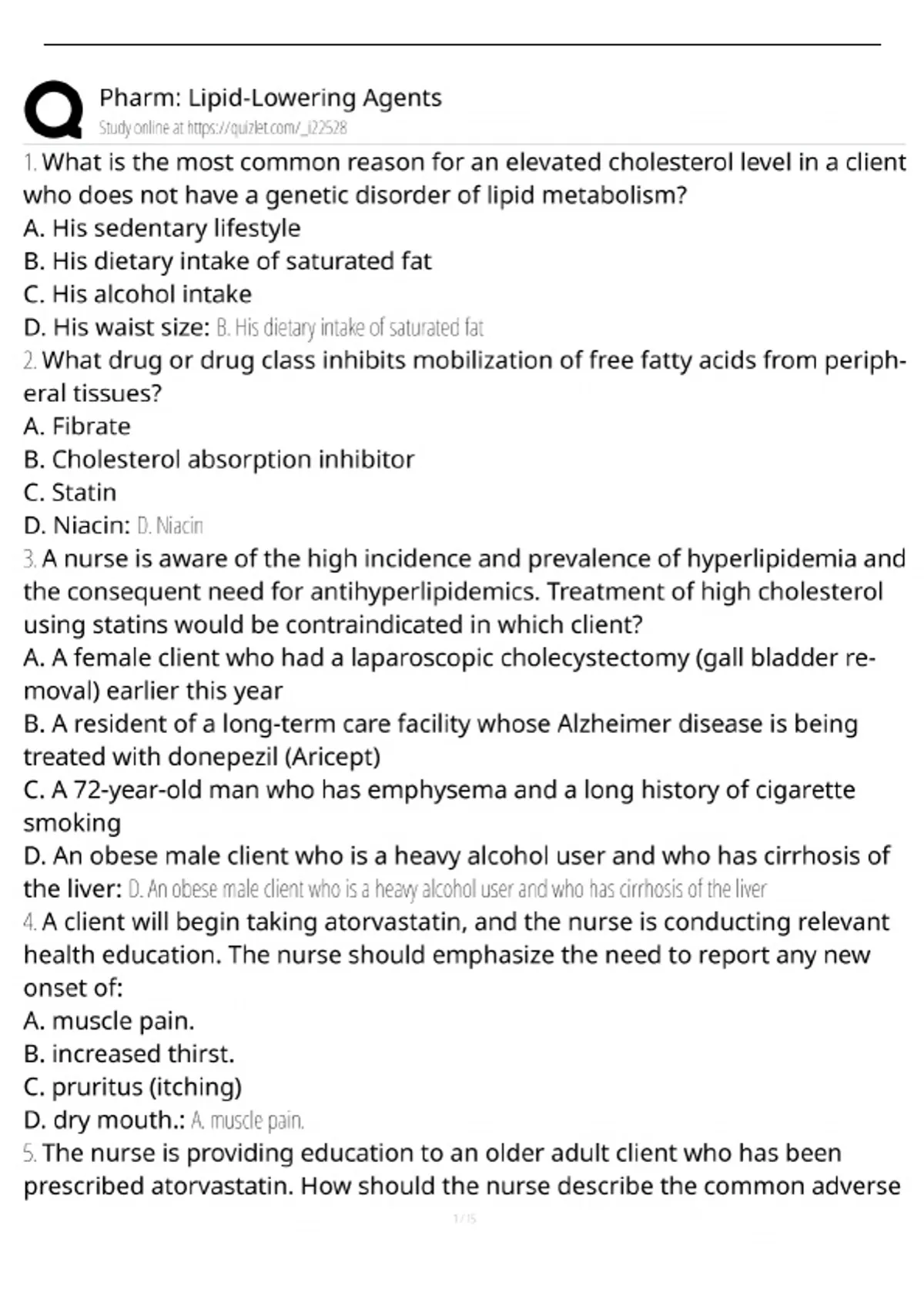 Pharm Lipid-Lowering Agents- Questions & Answers