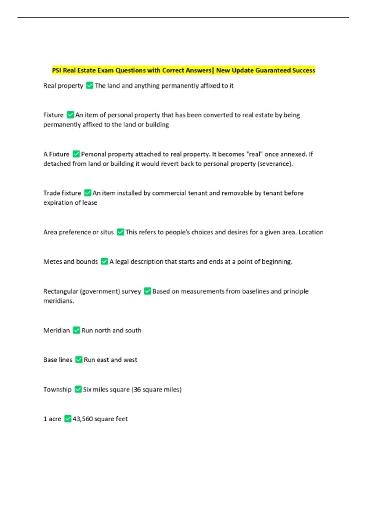 PSI Real Estate Exam Questions with Correct Answers| New Update Guaranteed Success