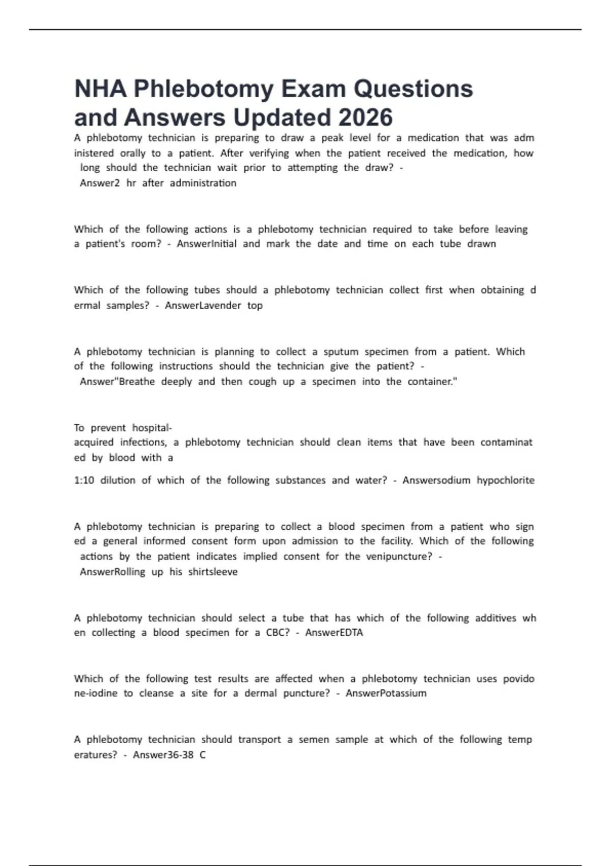 NHA Phlebotomy Exam Questions