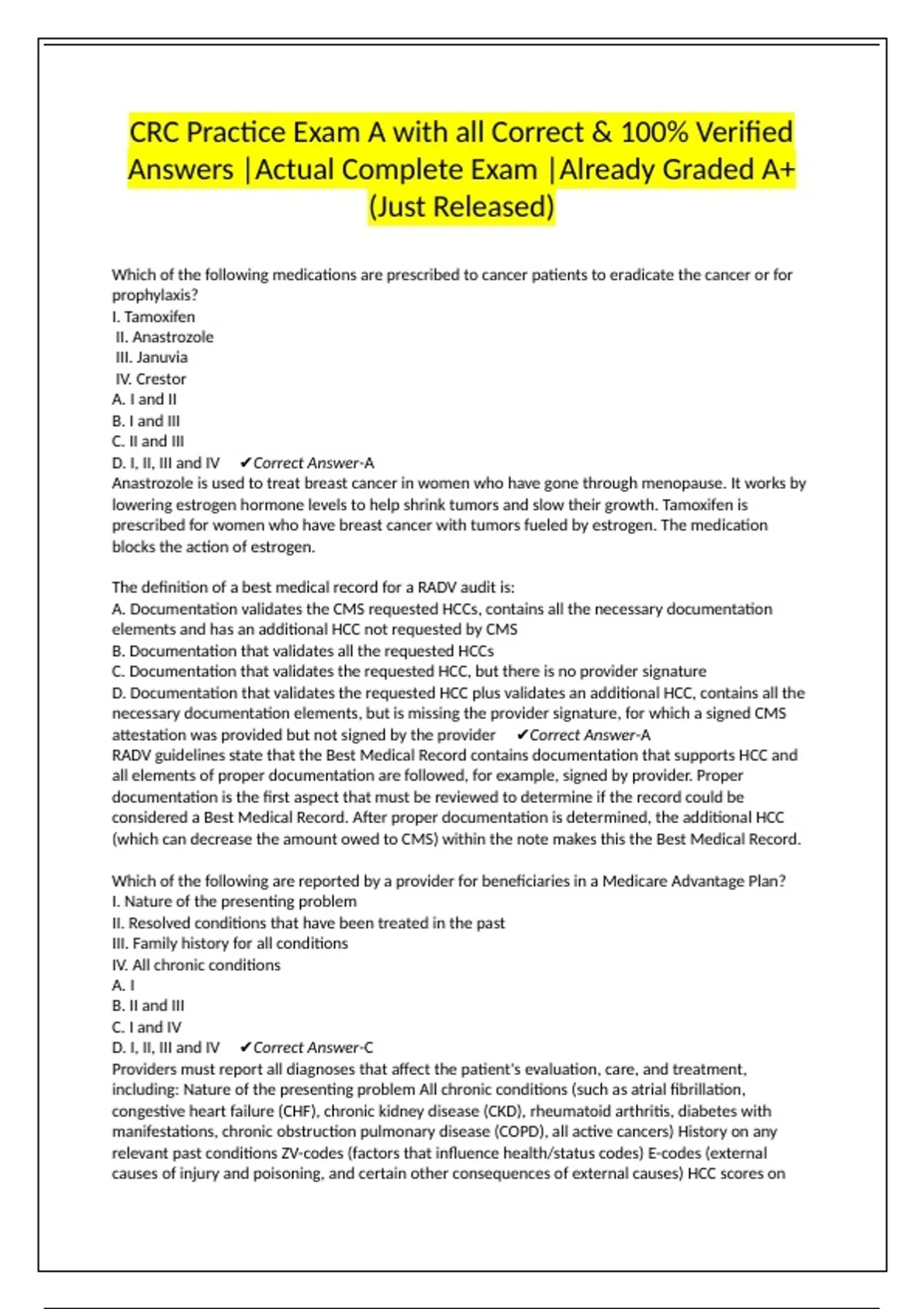 D. All professional provider documentation for the previous year ✔Correct Answer-C