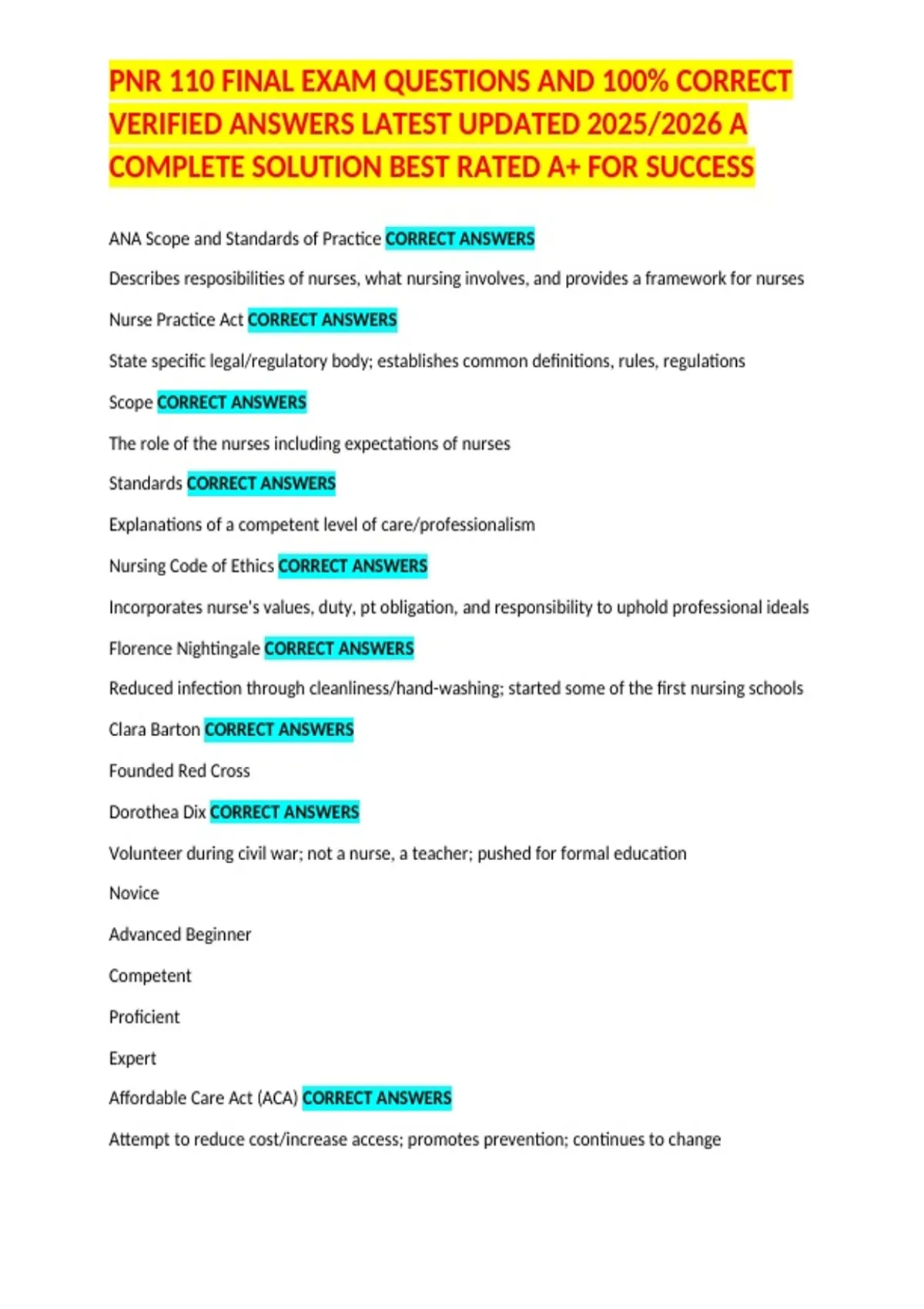 PNR 110 FINAL EXAM QUESTIONS AND 100% CORRECT VERIFIED ANSWERS LATEST UPDATED 2025/2026 A COMPLETE SOLUTION BEST RATED A+ FOR SUCCESS