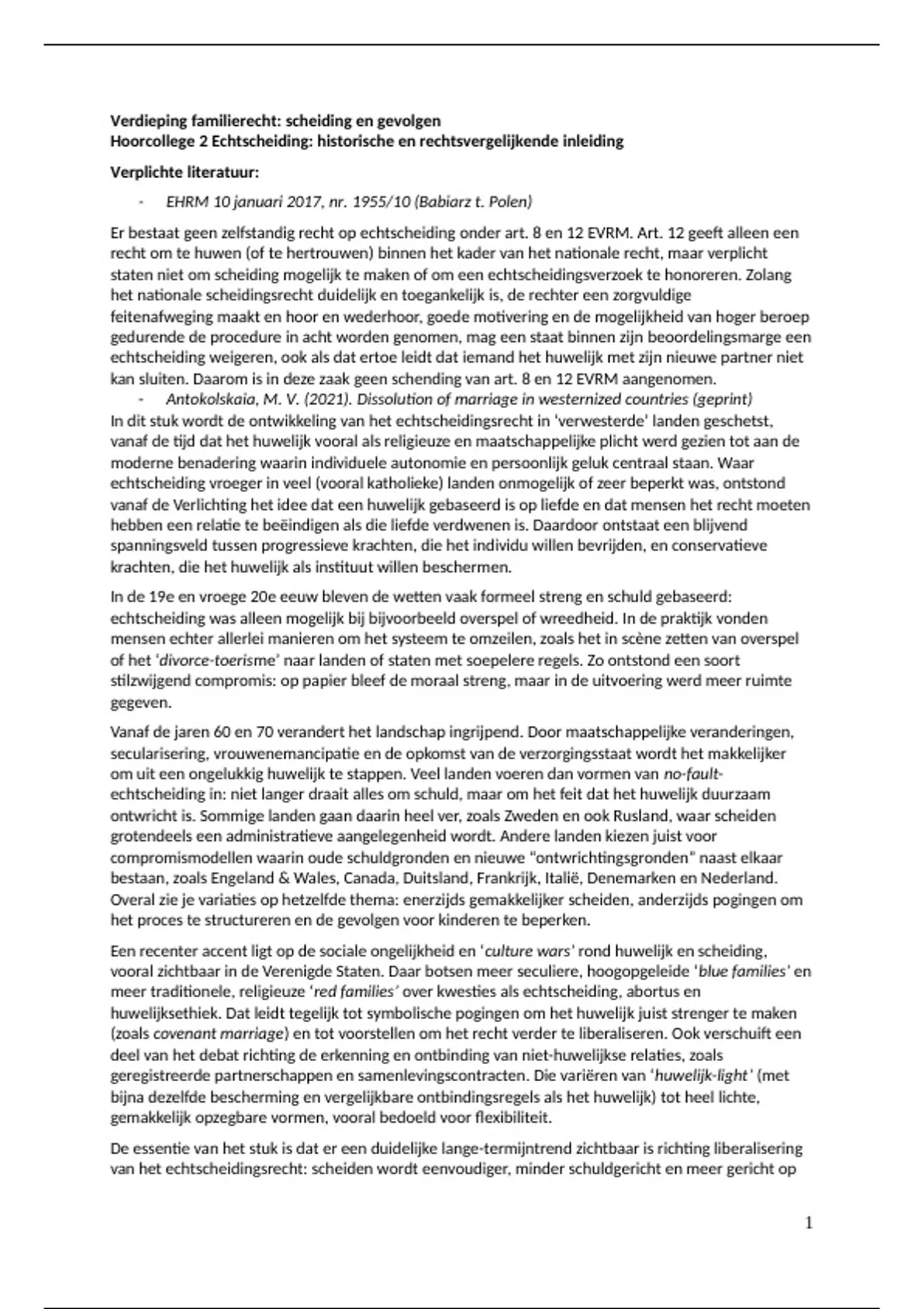 Aantekeningen HC 2 Echtscheiding: historische en rechtsvergelijkende inleiding