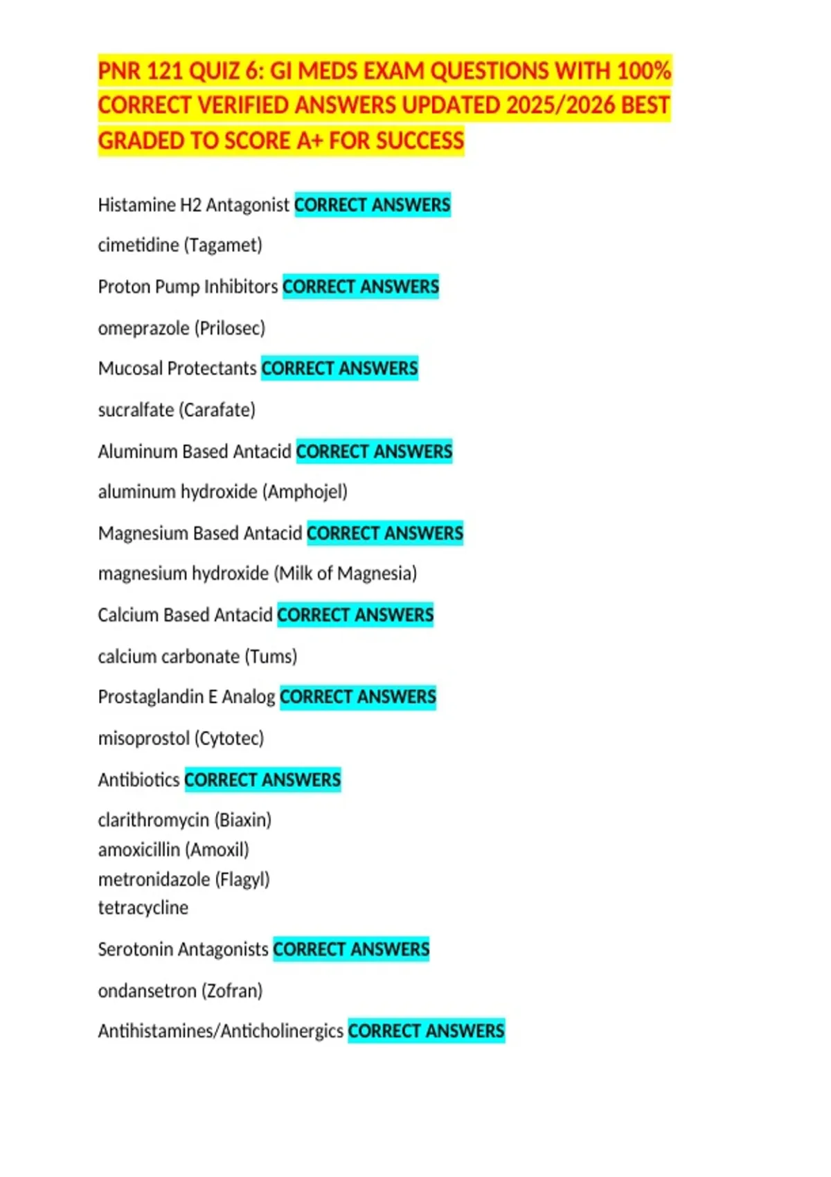 , PNR 121 QUIZ 6: GI MEDS EXAM QUESTIONS WITH 100%
