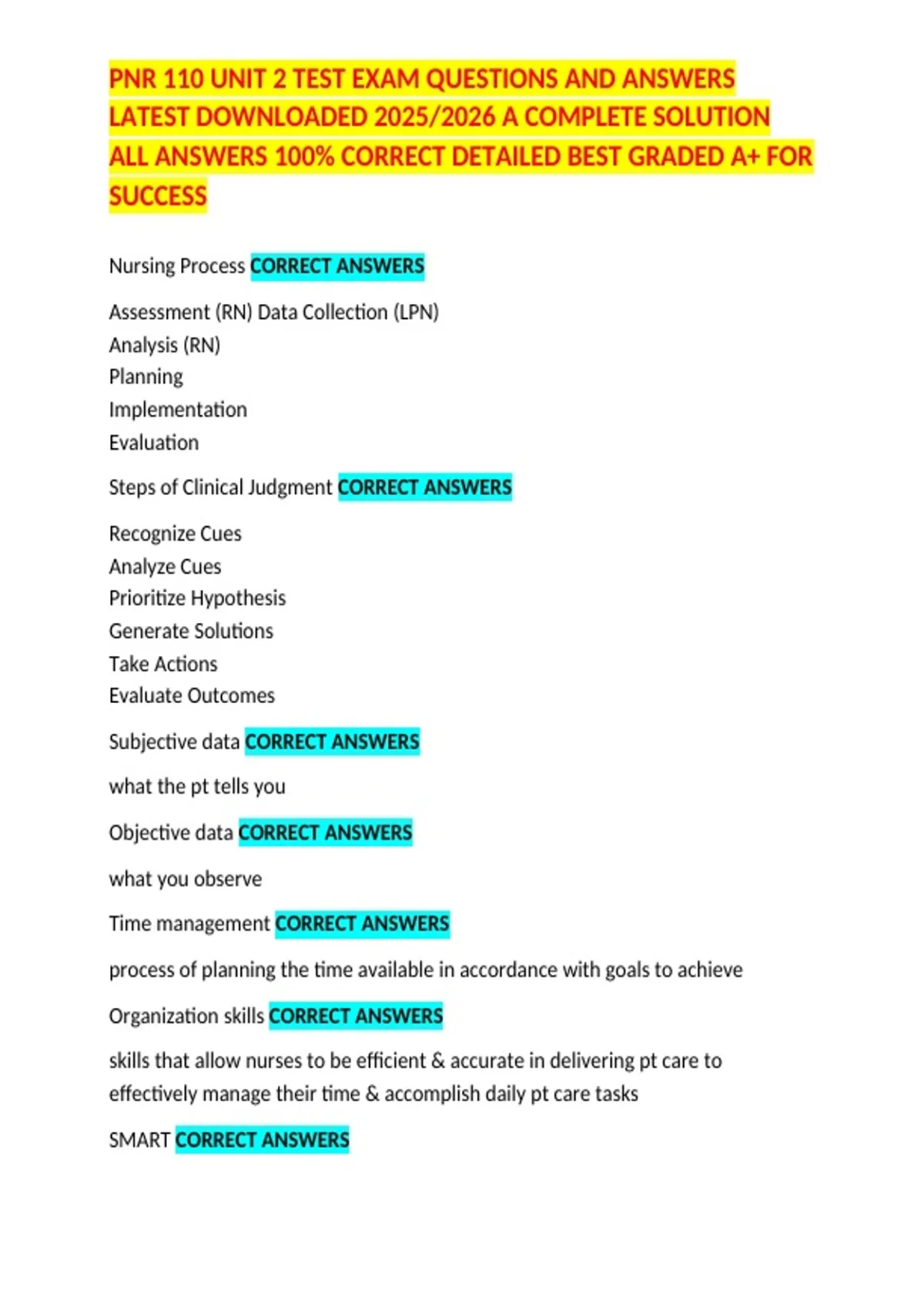 Nursing Process CORRECT ANSWERS
