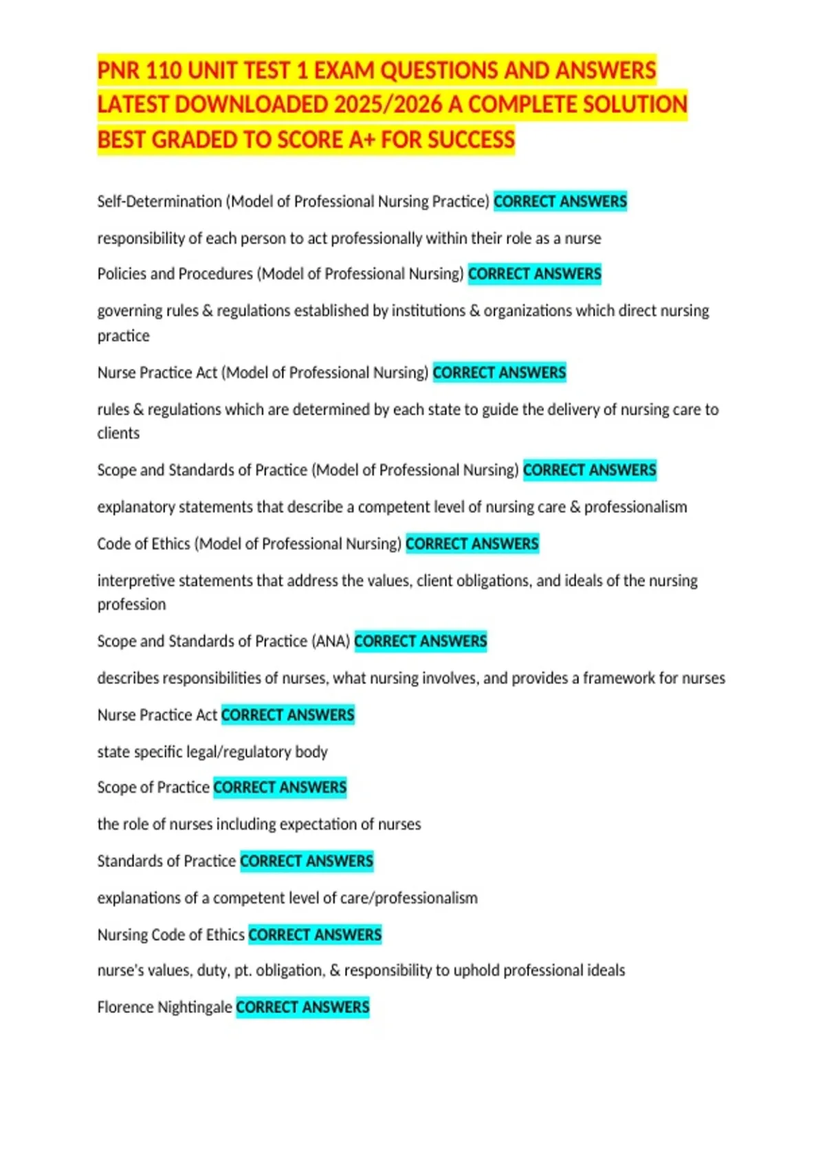 PNR 110 UNIT TEST 1 EXAM QUESTIONS AND ANSWERS LATEST DOWNLOADED 2025/2026 A COMPLETE SOLUTION BEST GRADED TO SCORE A+ FOR SUCCESS