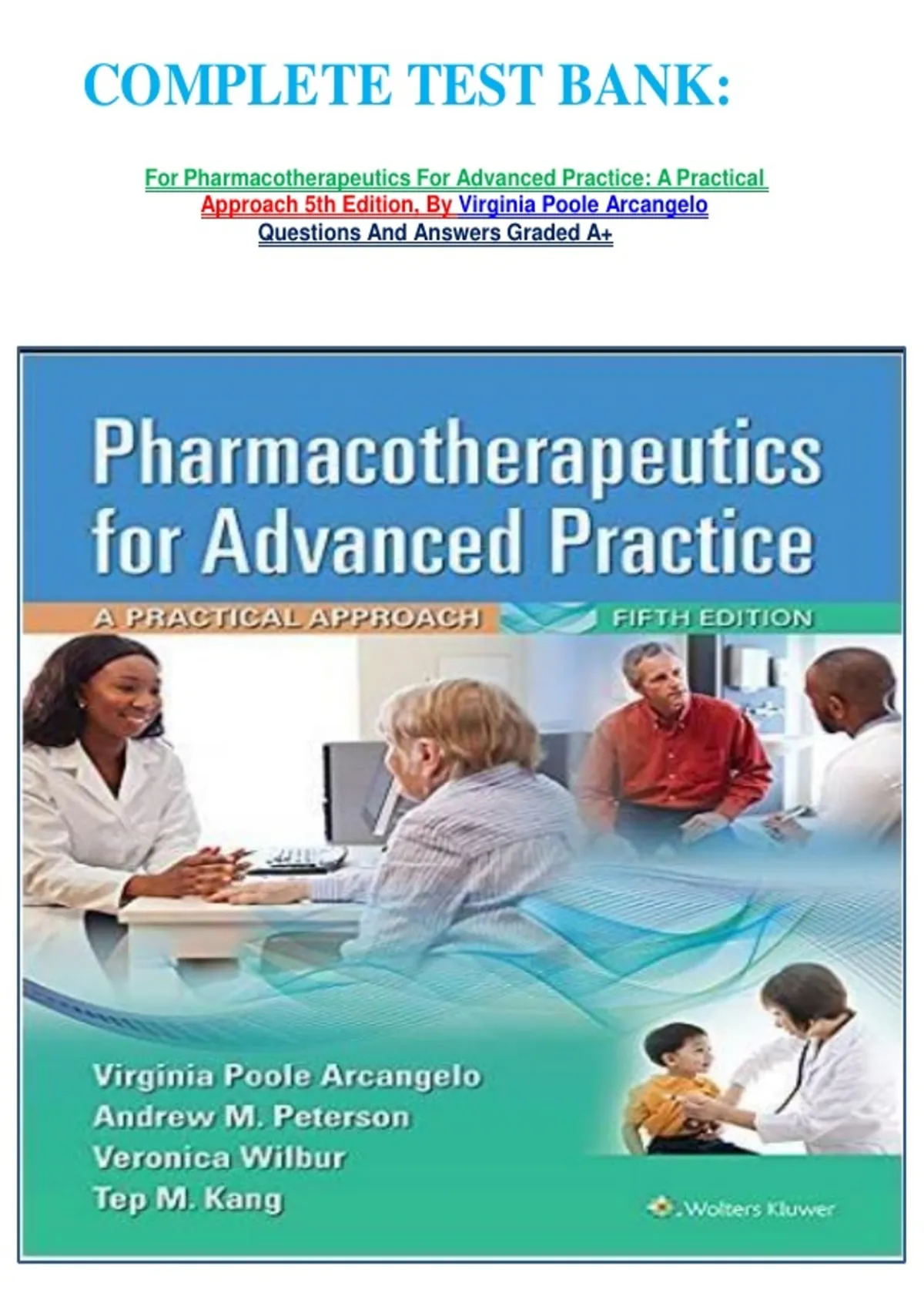 COMPLETE TEST BANK: For Pharmacotherapeutics For Advanced Practice: A Practical Approach 5th Edition, By Virginia Poole Arcangelo Questions And Answers Graded A+