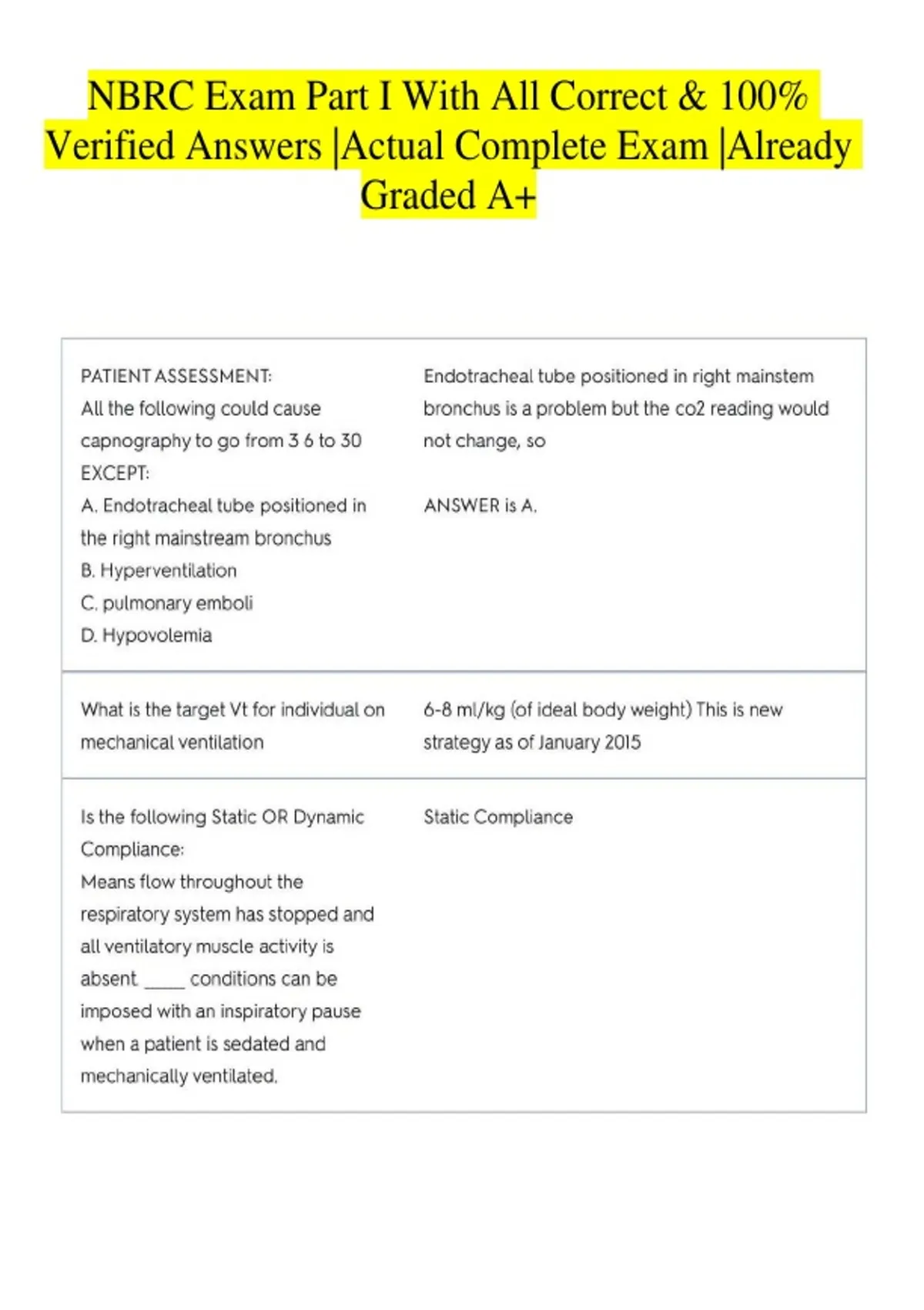 NBRC Exam Part I With All Correct & 100% Verified Answers |Actual Complete Exam |Already Graded A+