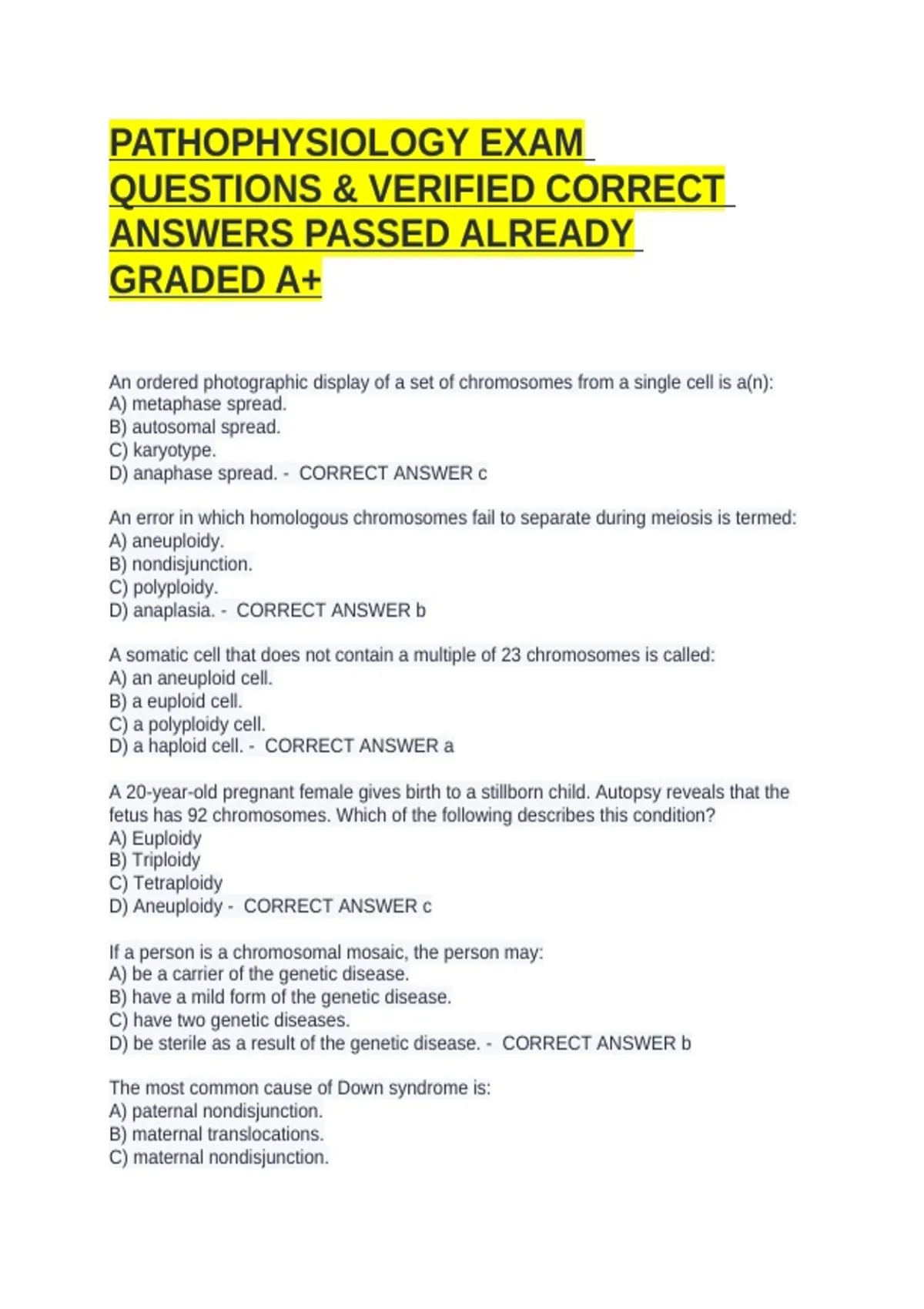 PATHOPHYSIOLOGY EXAM QUESTIONS & VERIFIED CORRECT ANSWERS PASSED ALREADY GRADED A+