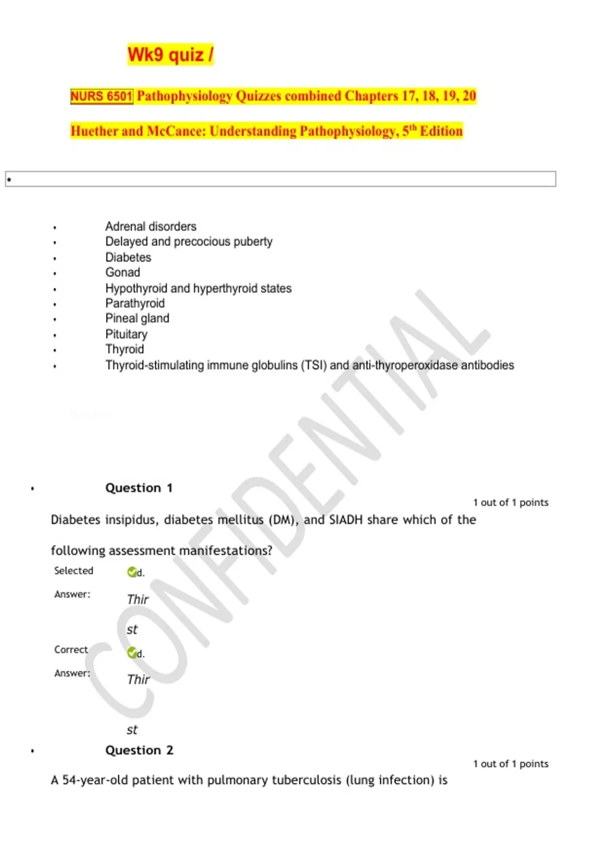 NURS 6501 Pathophysiology Quizzes combined Chapters 17, 18, 19, 20