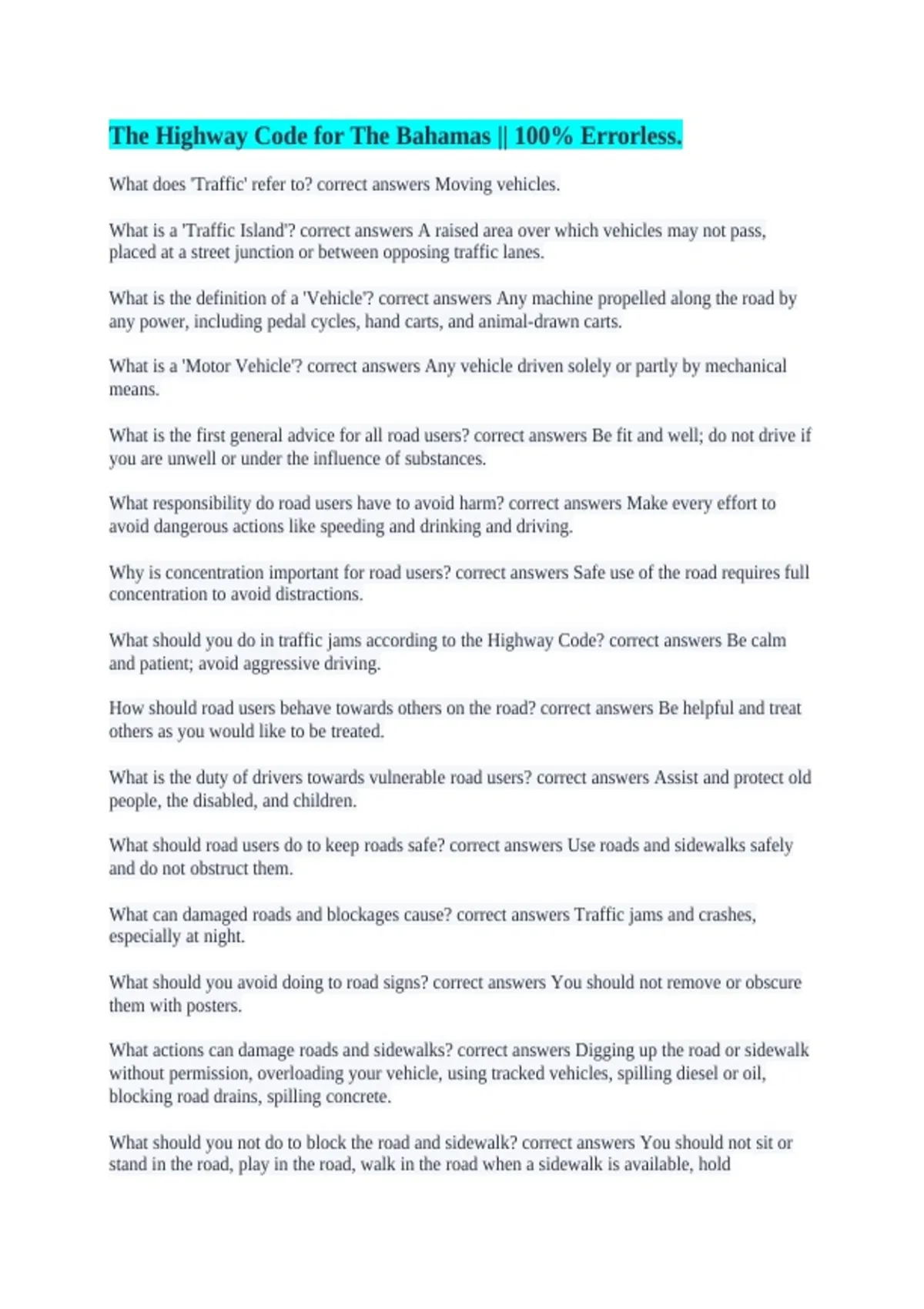 The Highway Code for The Bahamas || 100% Errorless.