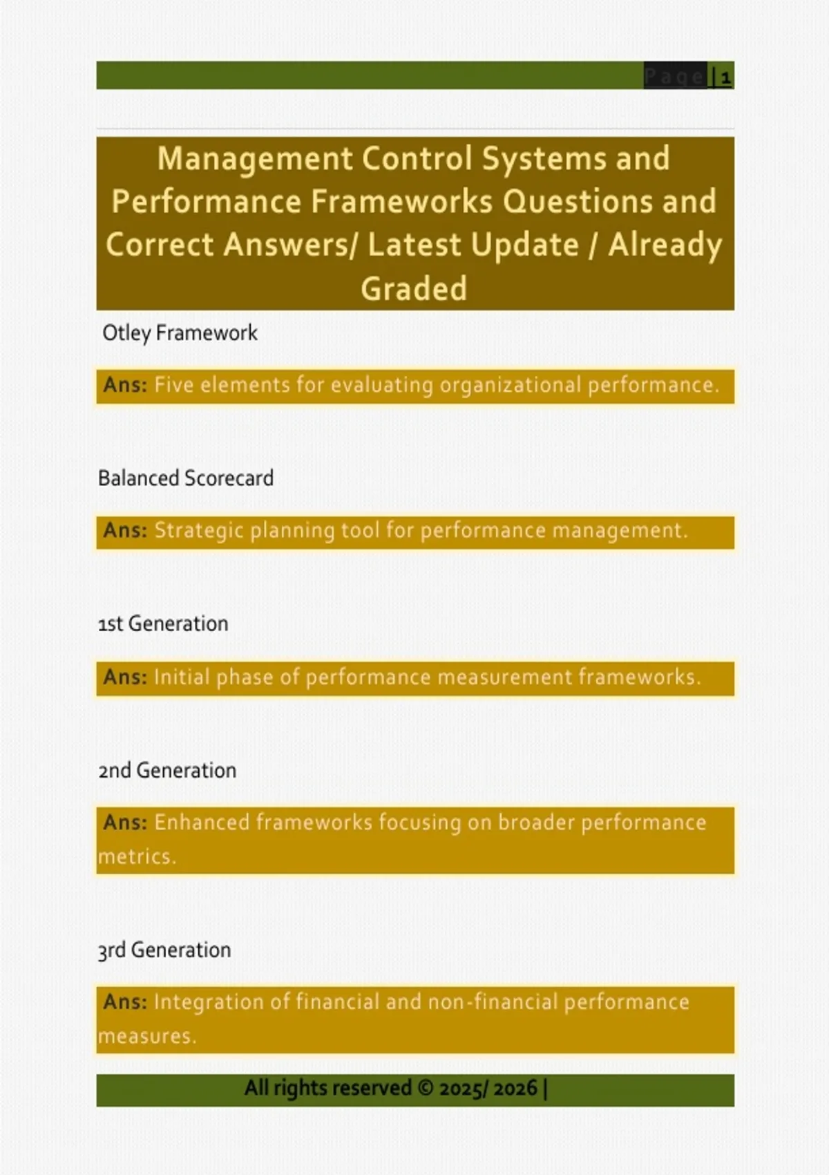Performance Frameworks Questions and