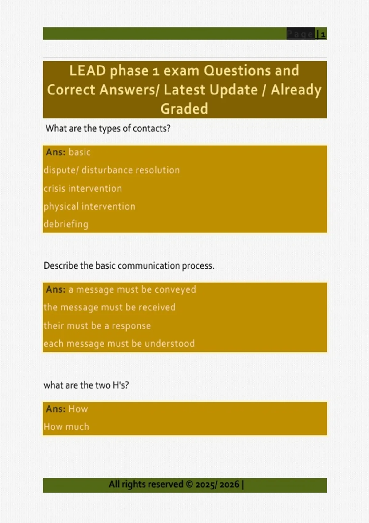 LEAD phase 1 exam Questions and Correct Answers/ Latest Update / Already Graded