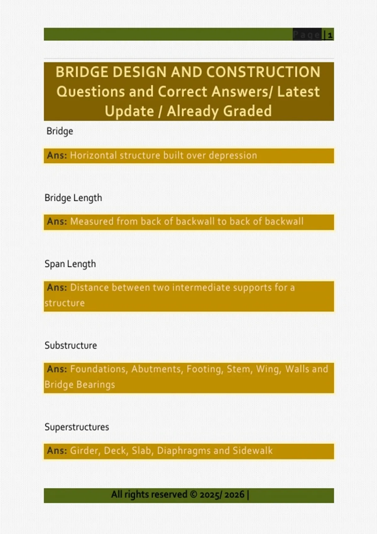Ans: Foundations, Abutments, Footing, Stem, Wing, Walls and