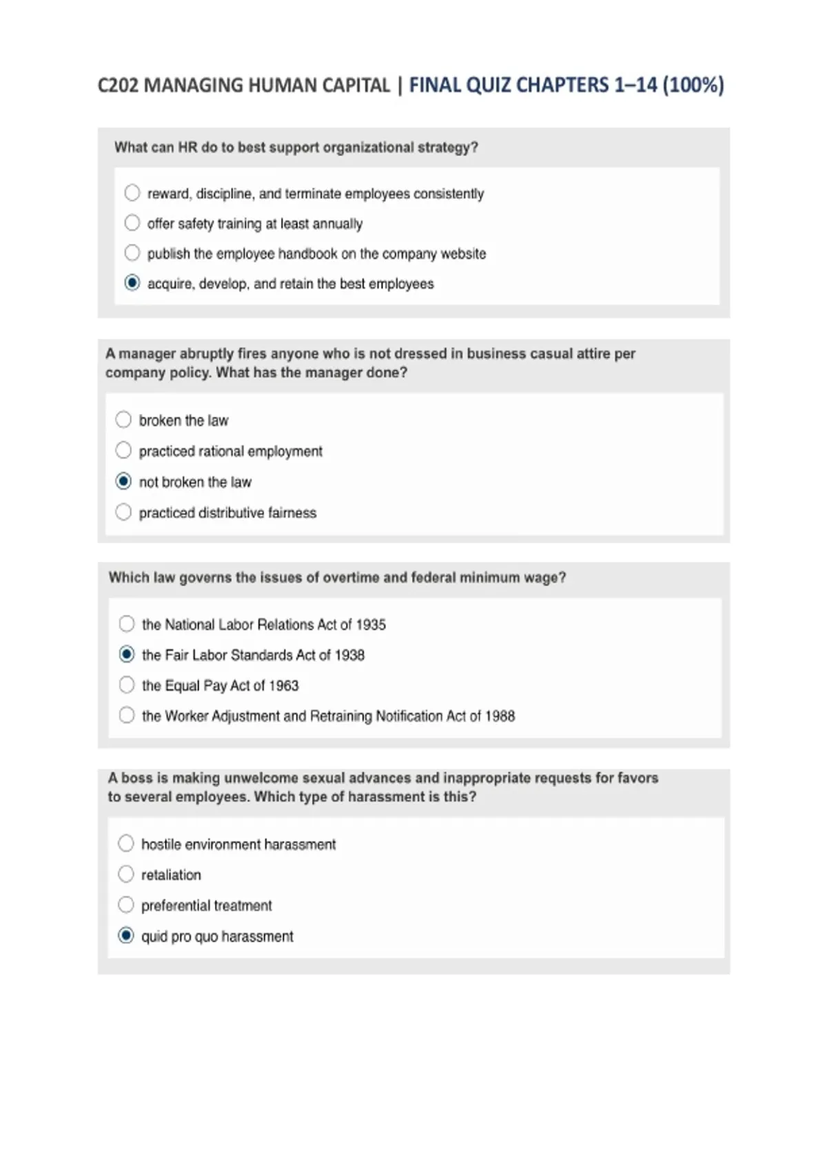 C202 Final Quiz Study Guide: Chapters 1–14 on HR Management