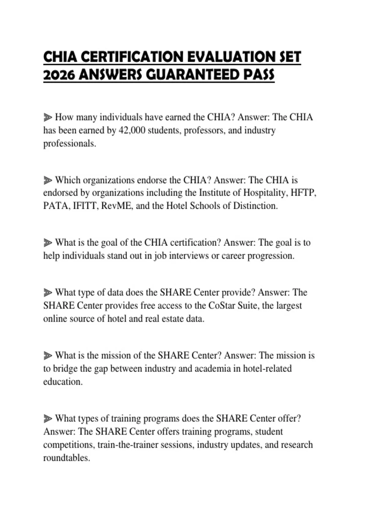 CHIA CERTIFICATION EVALUATION SET 2026 ANSWERS GUARANTEED PASS