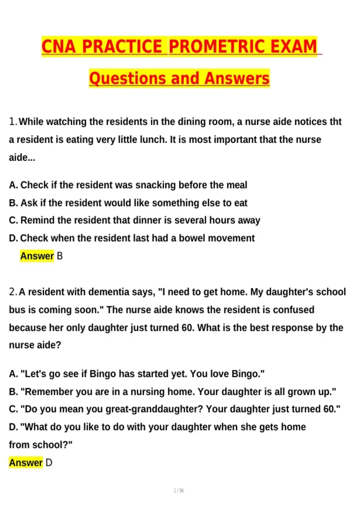 CNA Practice Qs - Prometric Exam Latest 2026 Actual Questions and Verified Answers (Latest 2026 / 2027 Update) A+ Grade 100% Guarantee Verified by Experts CNA Prometric Exam Latest 2026 Actual Questions and Verified Answers | CNA Practice Test 2026 Headmaster | Prometric Practice Exam, Written Test, Exam WI, Questions & Correct Answers | Latest 2026/2027 Update | A+ Grade | 100% Verified by Experts | Instant PDF Download CNA Prometric Exam Latest 2026 Actual Questions and Verified Answers, CNA Practice Test 2026 Headmaster, CNA Practice Test From Headmaster 2026, CNA Prometric Practice Exam, CNA Prometric Questions 2026, CNA Prometric Written Test, CNA Written Exam Prometric Practice Test, CNA Written Exam Questions, CNA Exam WI, CNA Practice Exam 1 Questions and Correct Answers, Verified by Experts, A+ Grade Guarantee, 100% Correct, Instant PDF Download, Updated 2026/2027, Complete CNA Study Material for Exam Prep, Headmaster Practice Questions, Prometric Exam Simulation, CNA Exam Practice, CNA Certification Preparation, Verified Answers PDF, Exam Ready, Instant Download, Practical CNA Test Prep, Colleges Taking CNA Exam Examples: Milwaukee Area Technical College, University of Wisconsin