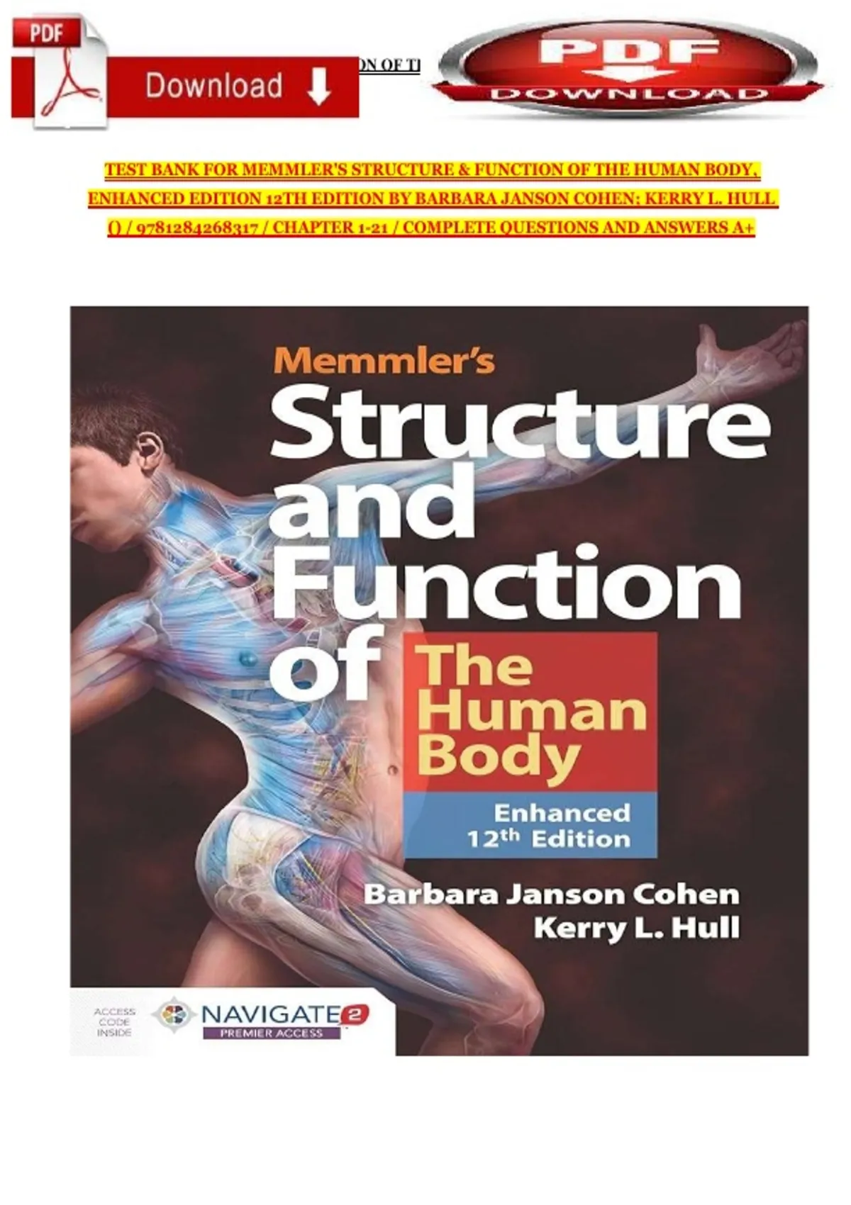 TEST BANK FOR MEMMLER'S STRUCTURE & FUNCTION OF THE HUMAN BODY,