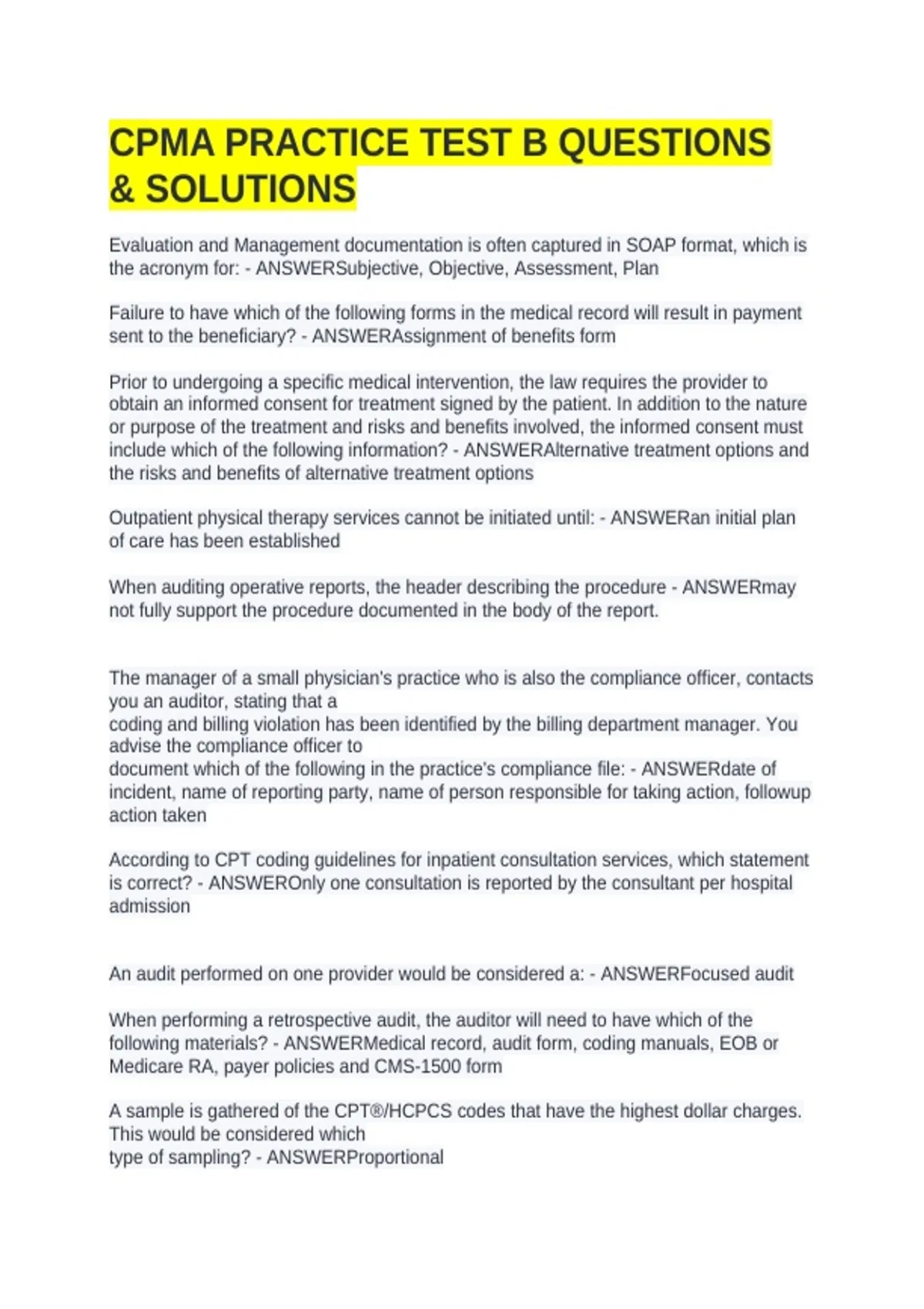document which of the following in the practice's compliance file: - ANSWERdate of