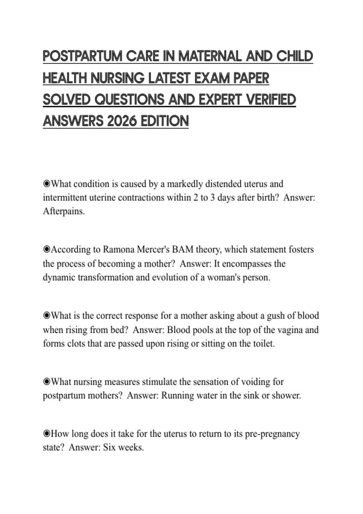 intermittent uterine contractions within 2 to 3 days after birth? Answer: