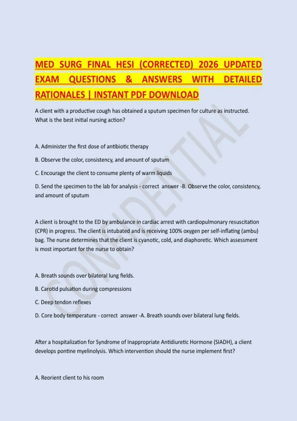 MED SURG FINAL HESI (CORRECTED) 2026 UPDATED