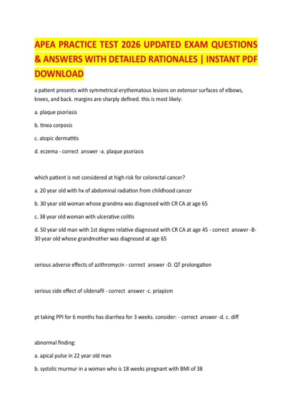 APEA PRACTICE TEST 2026 UPDATED EXAM QUESTIONS & ANSWERS WITH DETAILED RATIONALES | INSTANT PDF DOWNLOAD
