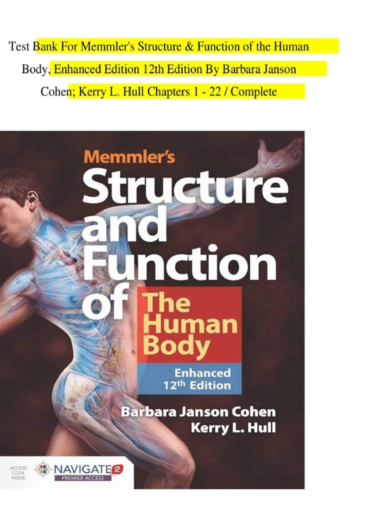 Test Bank For Memmler's Structure & Function of the Human Body, Enhanced Edition 12th Edition By Barbara Janson Cohen; Kerry L. Hull Chapters 1 - 22 / Complete