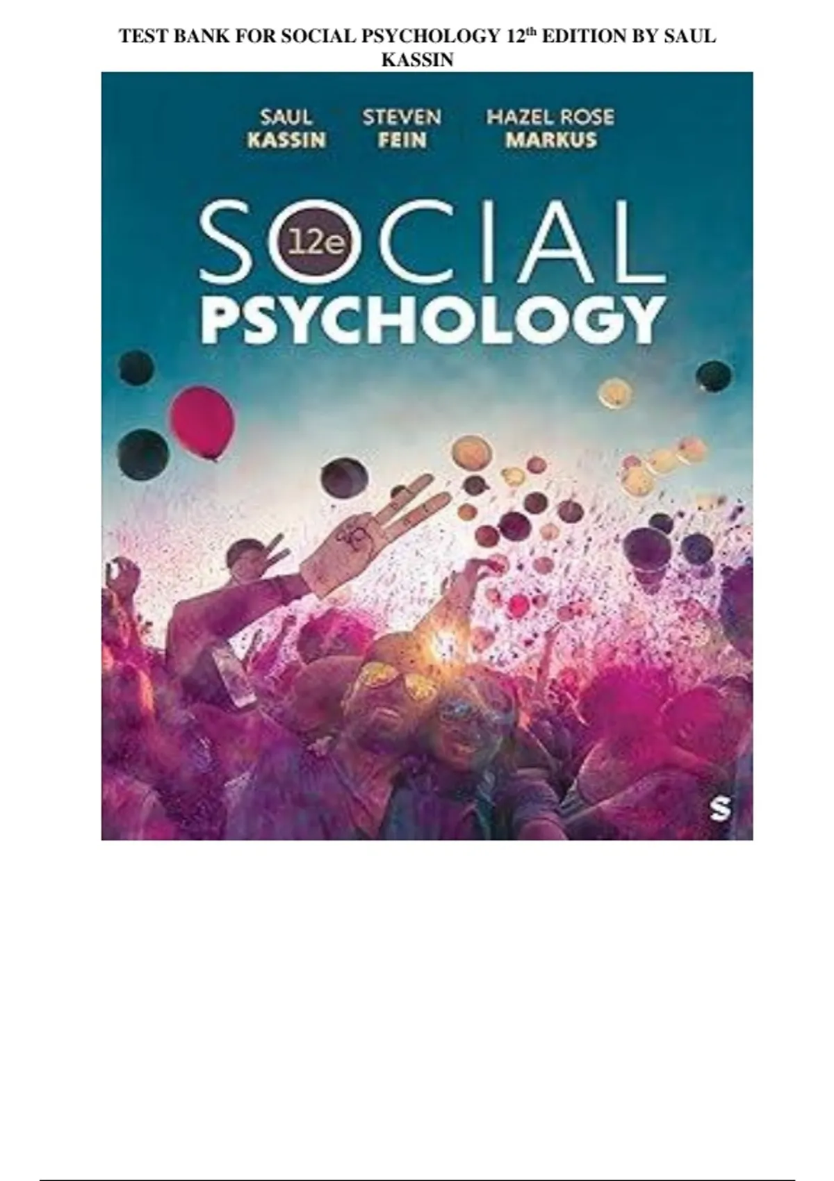 Test Bank for Social Psychology 12th Edition by Saul Kassin |ISBN: 9781071852002| Guide A+