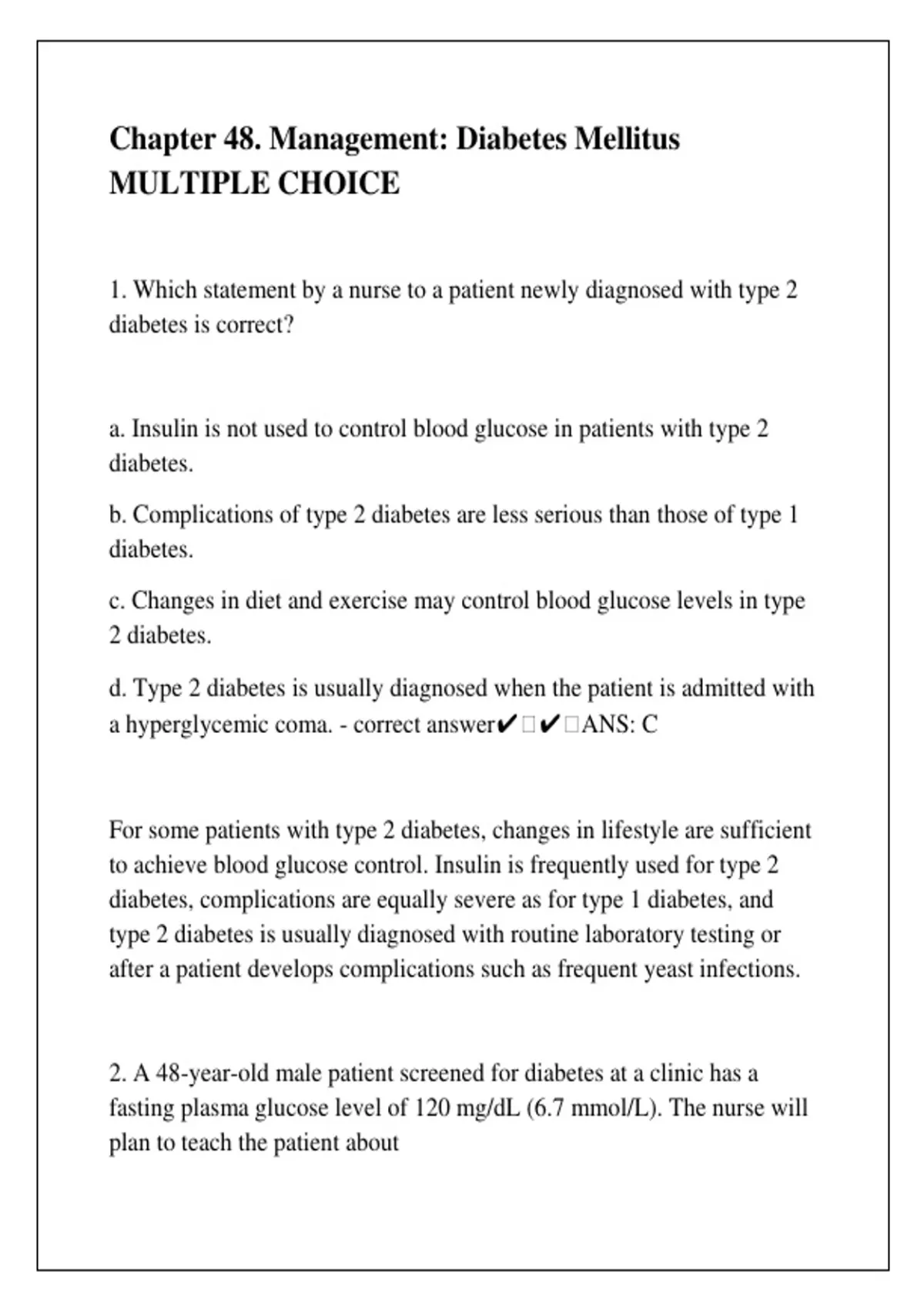 2. A 48-year-old male patient screened for diabetes at a clinic has a