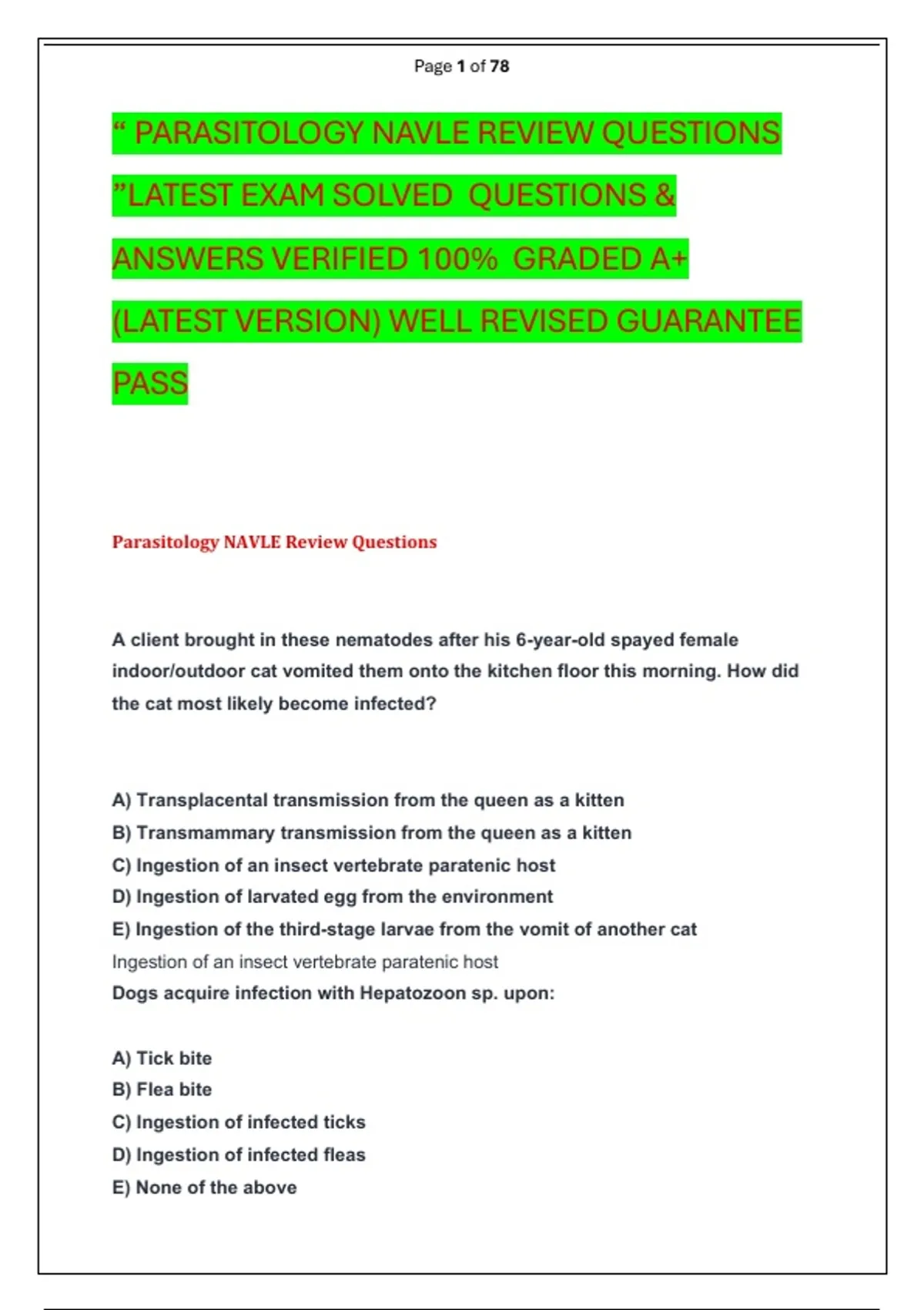“ PARASITOLOGY NAVLE REVIEW QUESTIONS