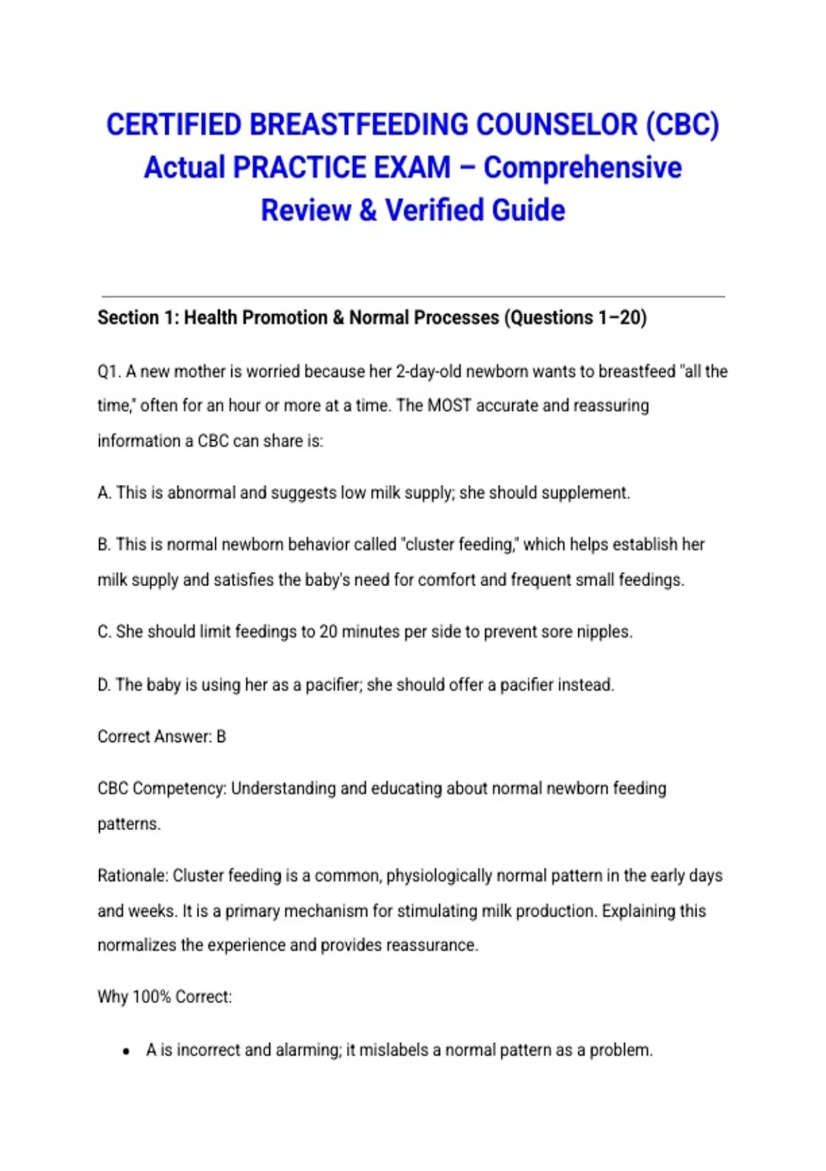 CERTIFIED BREASTFEEDING COUNSELOR (CBC) Actual PRACTICE EXAM – Comprehensive Review & Verified Guide
