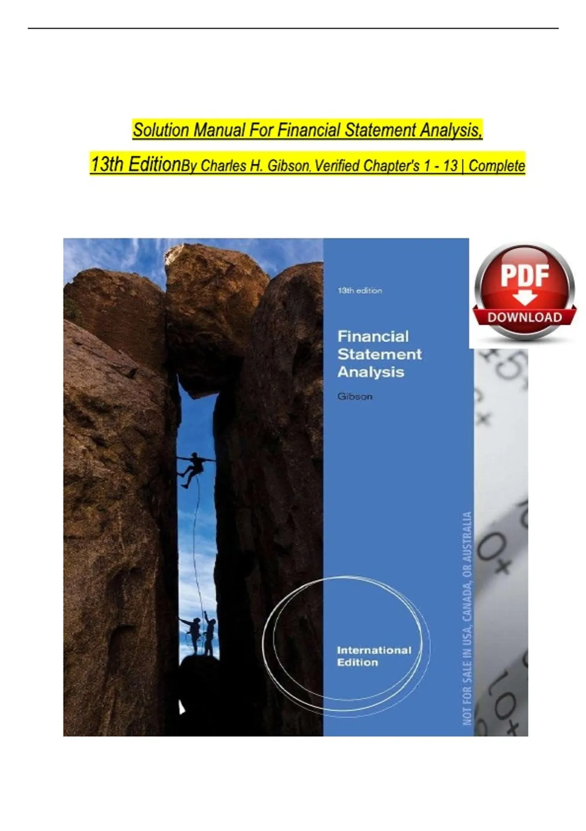 Solution Manual For Financial Statement Analysis 13th Edition By Gibson, All 13 Chapters Covered, Verified Latest Edition