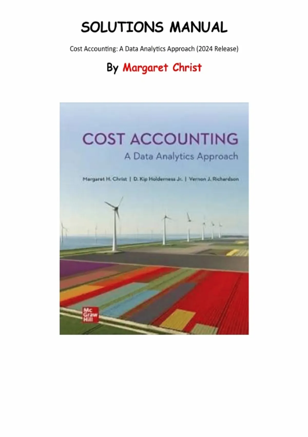 This document provides the complete solutions manual for Cost Accounting: A Data Analytics Approach (2024 Edition) by Margaret Christ. It includes detailed, step-by-step solutions for Chapters 1 through 14, covering cost behavior, job-order and process costing, activity-based costing, budgeting, variance analysis, and data-driven decision making. The material supports deeper understanding of analytical cost accounting methods and is suitable for coursework, homework support, and exam preparation.