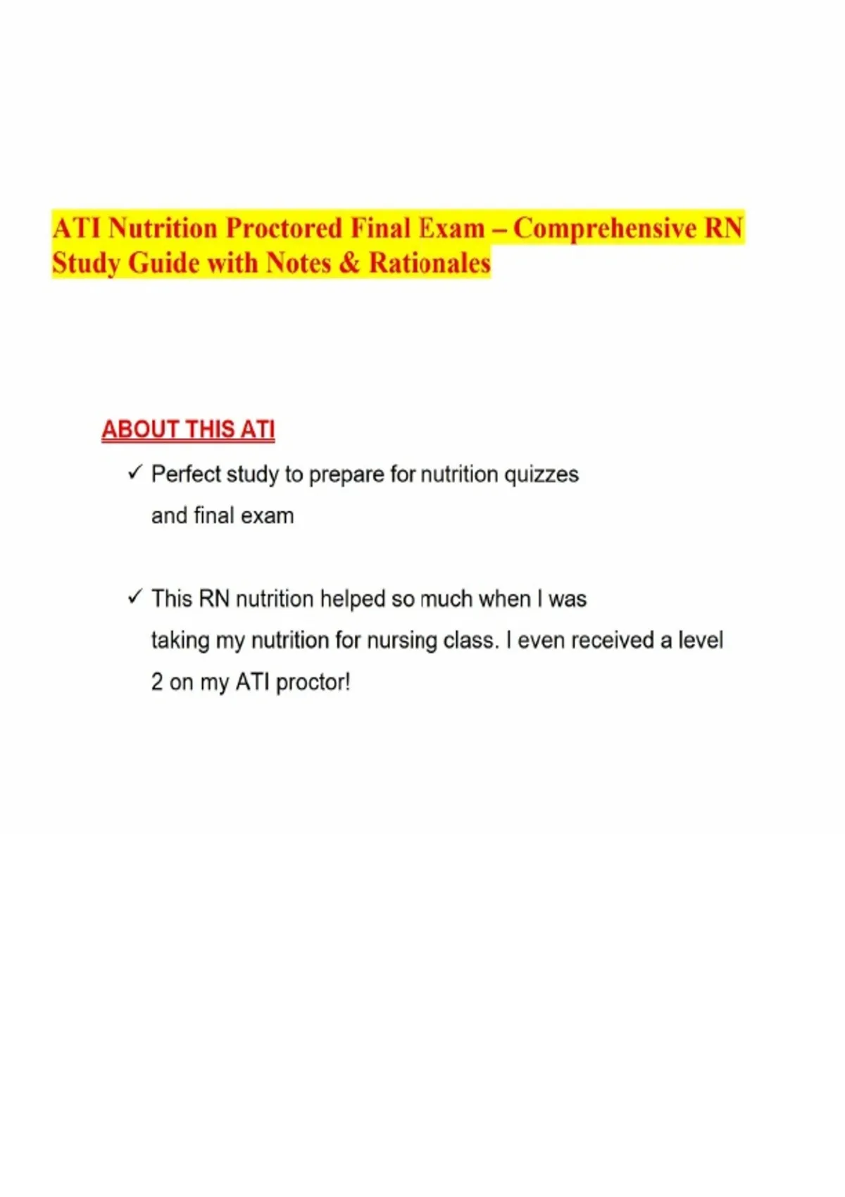 ATI Nutrition Proctored Final Exam – Comprehensive RN Study Guide with Notes & R ATI Nutrition Proctored Final Exam – Comprehensive RN Study Guide with Notes & R ATI Nutrition Proctored Final Exam – Comprehensive RN Study Guide with Notes & R