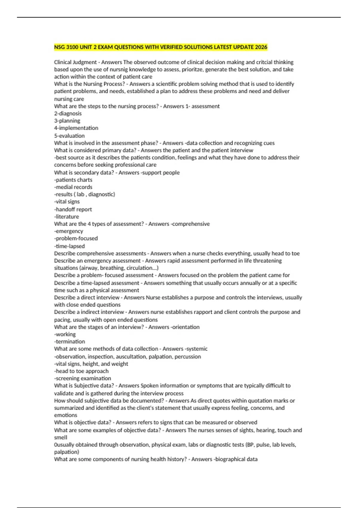 What are the steps to the nursing process? - Answers 1- assessment