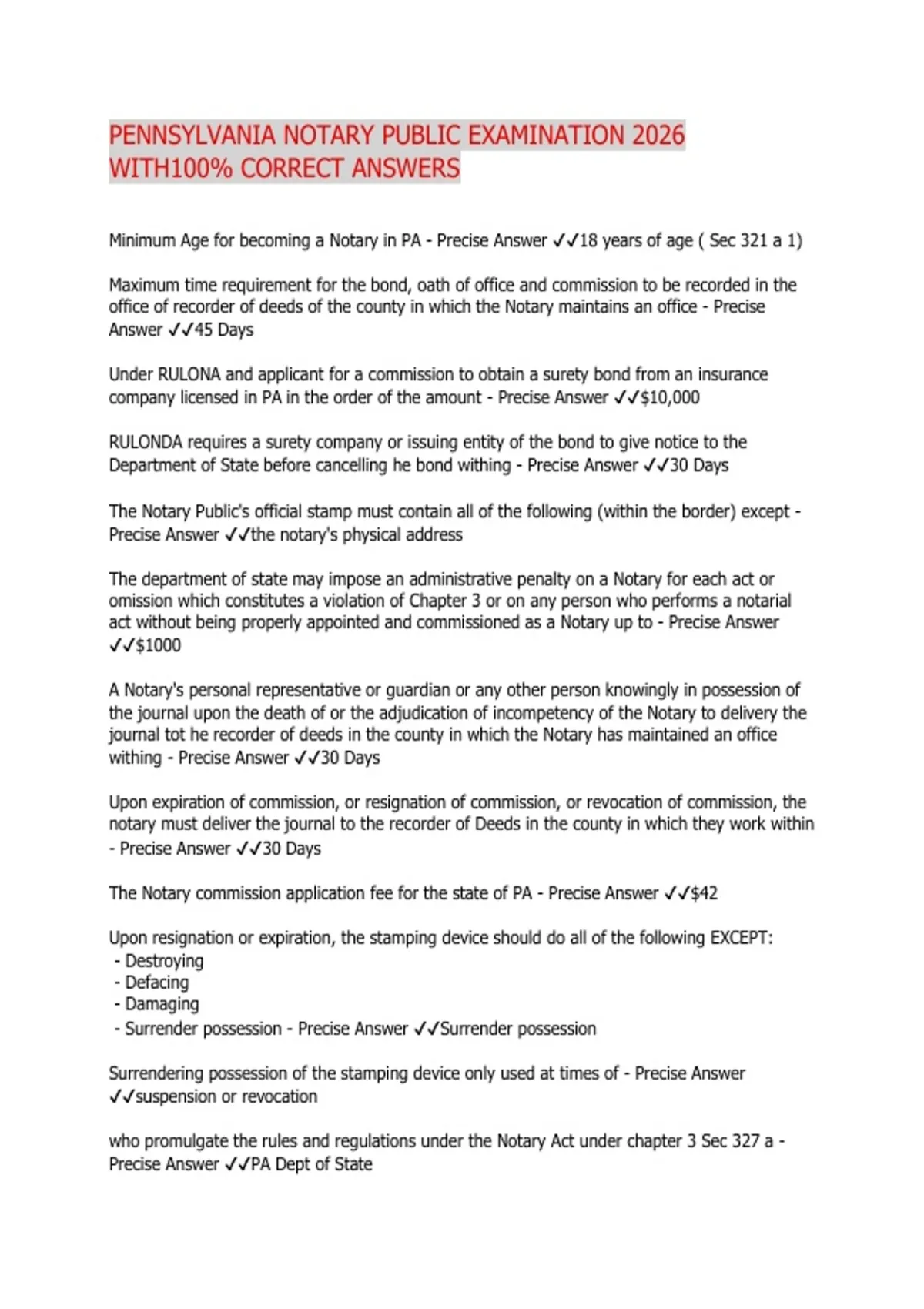 Precise Answer ✔✔PA Dept of State