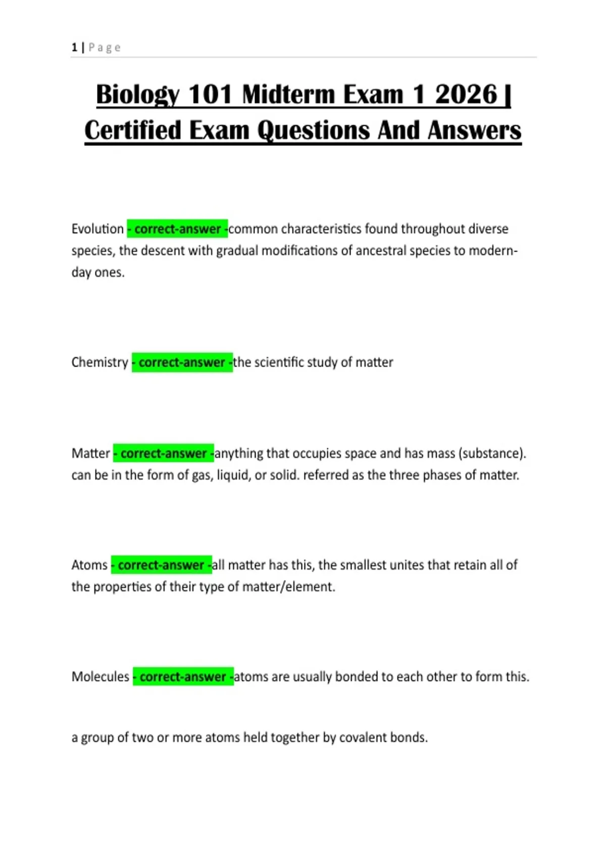 Biology 101 Midterm Exam 1 2026 | Certified Exam Questions And Answers