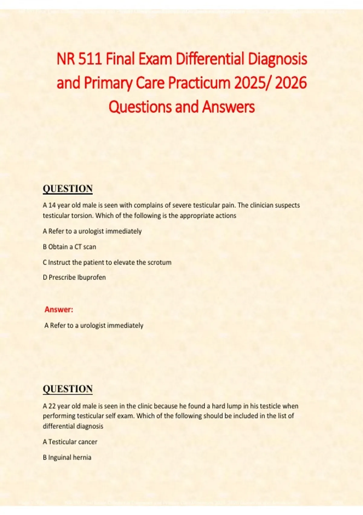 Page 1 of 56 NR 511 Final Exam Differential Diagnosis and Primary Care Practicum 2025- 2026 Questions and Answers.pdf 2026.