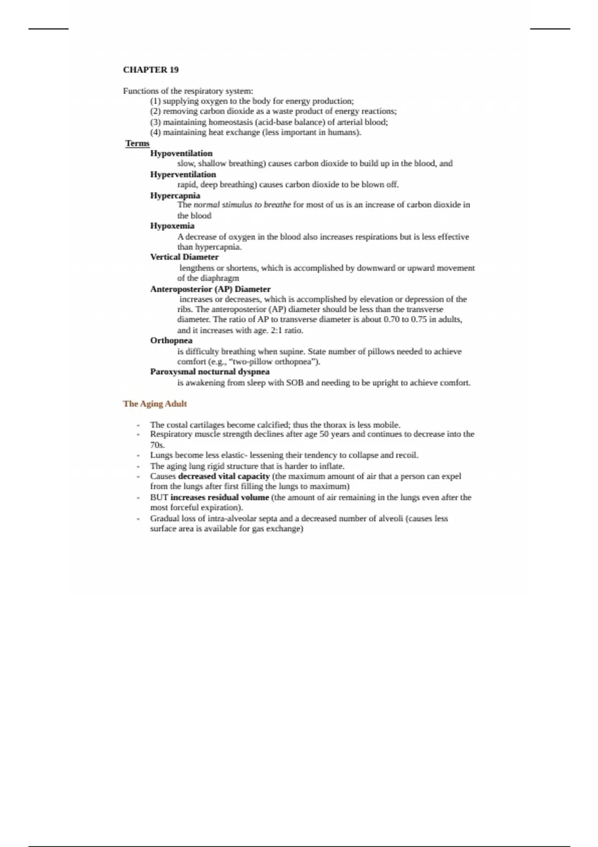 - The costal cartilages become calcified; thus the thorax is less mobile.