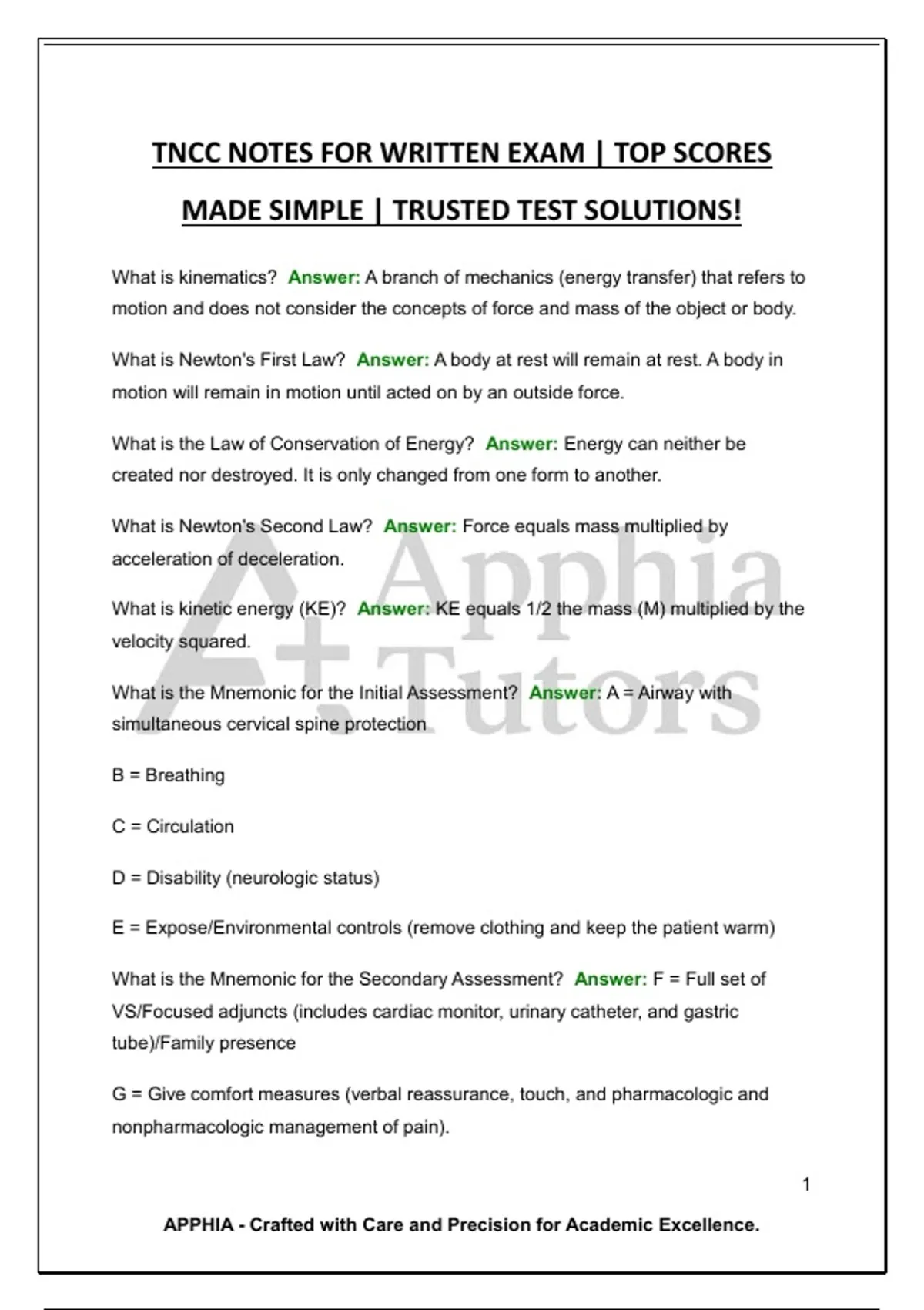 TNCC NOTES FOR WRITTEN EXAM | TOP SCORES MADE SIMPLE | TRUSTED TEST SOLUTIONS!